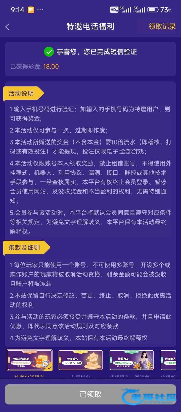 领过了,感谢兄弟分享