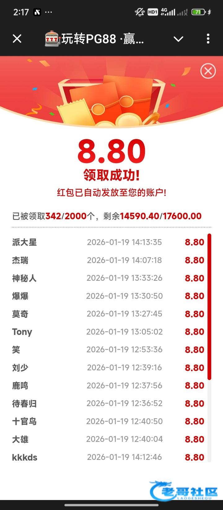 @pg88 机器人 进去进群领取红包 有流水地址就行 还有1700个包