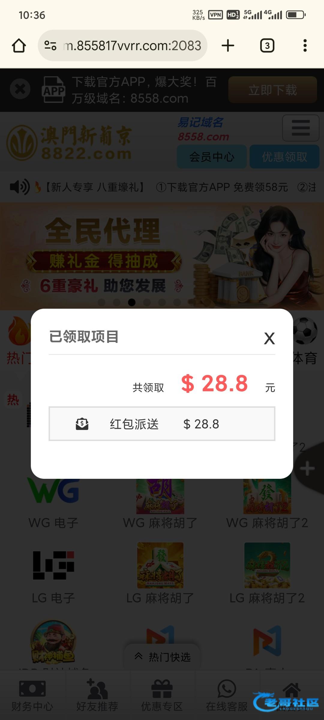 8558和8822虽然说合并了,但是优惠好像不一样,昨天有老哥发8822我上去也有六块多,今天用8558.com 网址登录显示这个神秘彩金,感觉彩金是分开的。