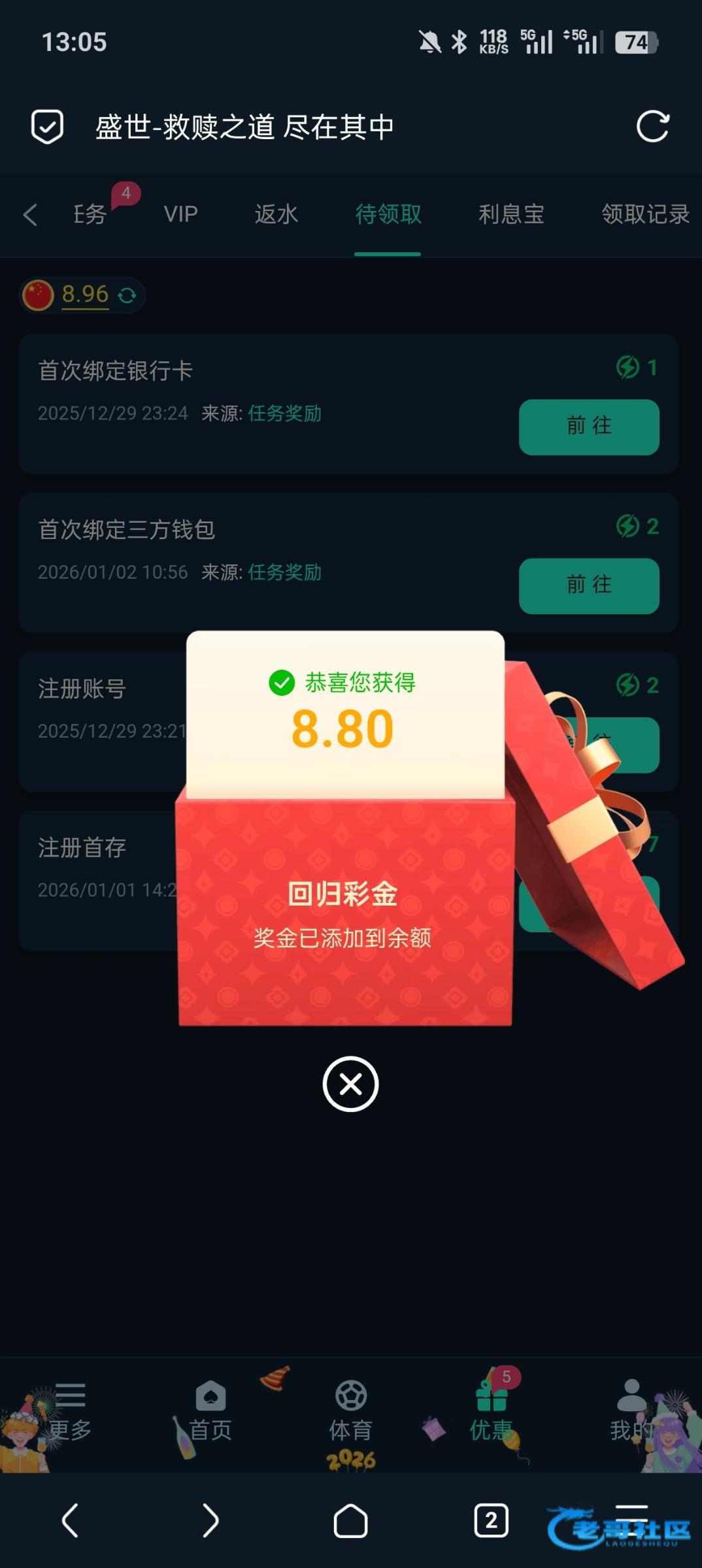 老哥的稳台盛世有回归彩金,几天没登录的可以去看看