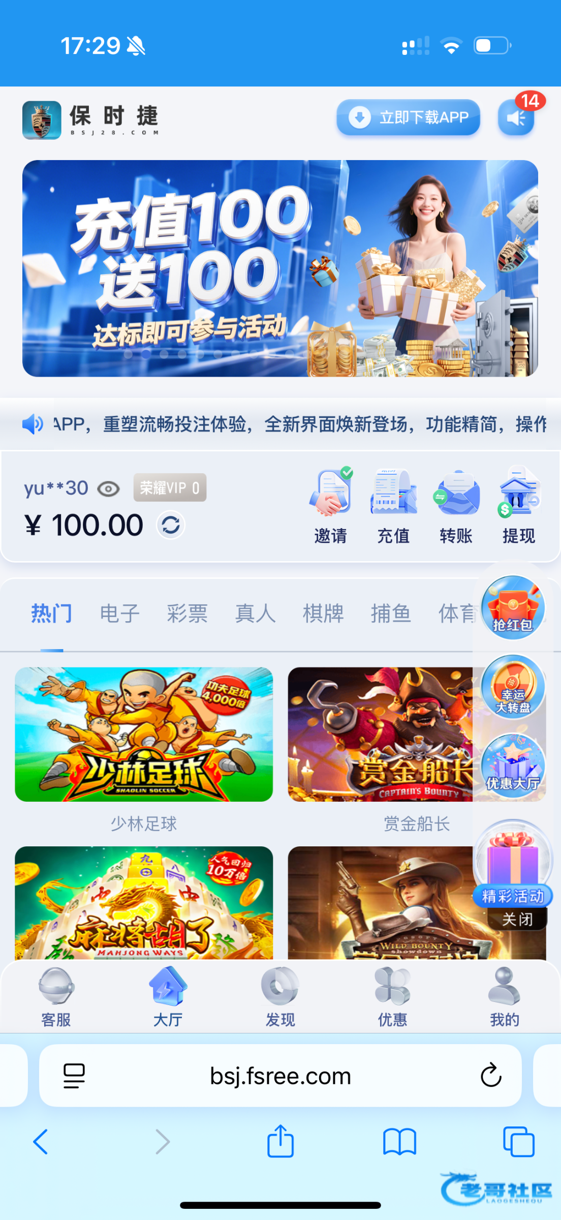 收到老哥的补偿,充100补100大气,要继续支持