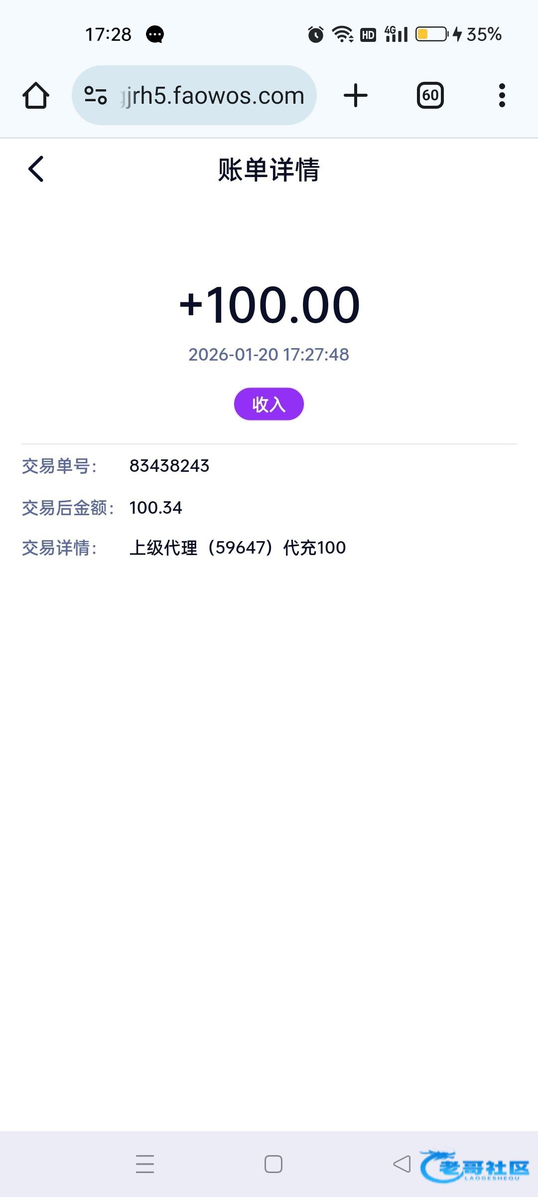 收到老哥