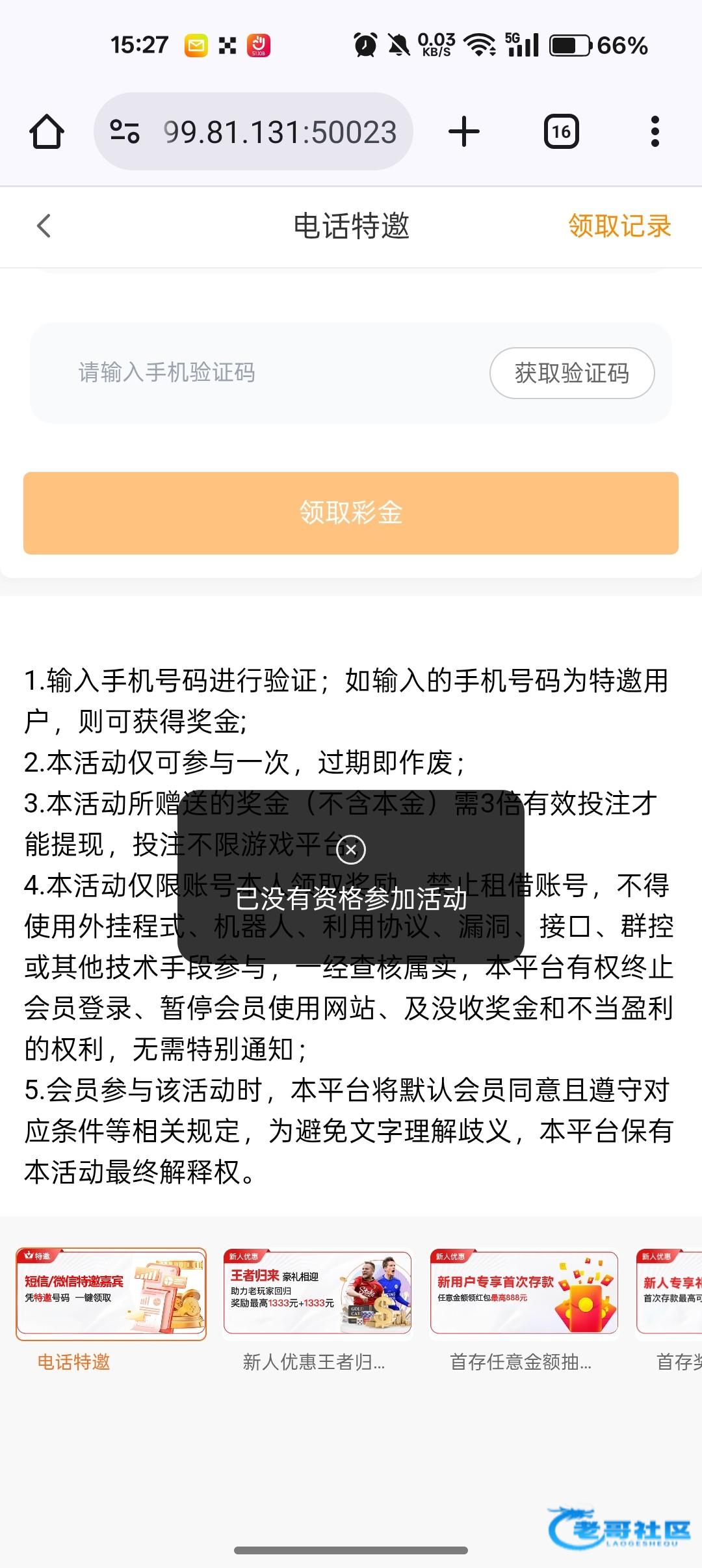 链接https://54.46.55.91:23005 名字和手机要一致才可以领,否则浪费特邀。自助领取