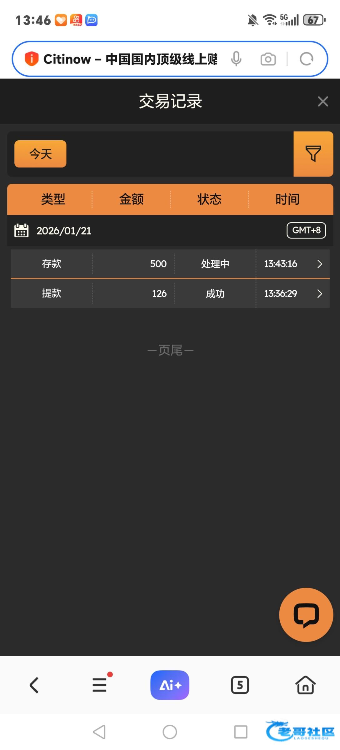 打完流水还有46,去百家乐玩两把打到108,也给出了