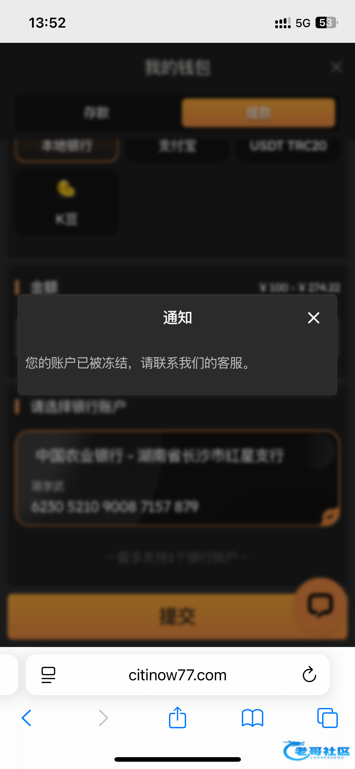 上午看到有老哥发的这个台去玩了打够流水领了88干到200多没提挂了。充了500去申请首充活动,打到3700我没提然后输到剩400左右想着输完算了100一拉又炸回2000多,提现一下就冻结账号了...