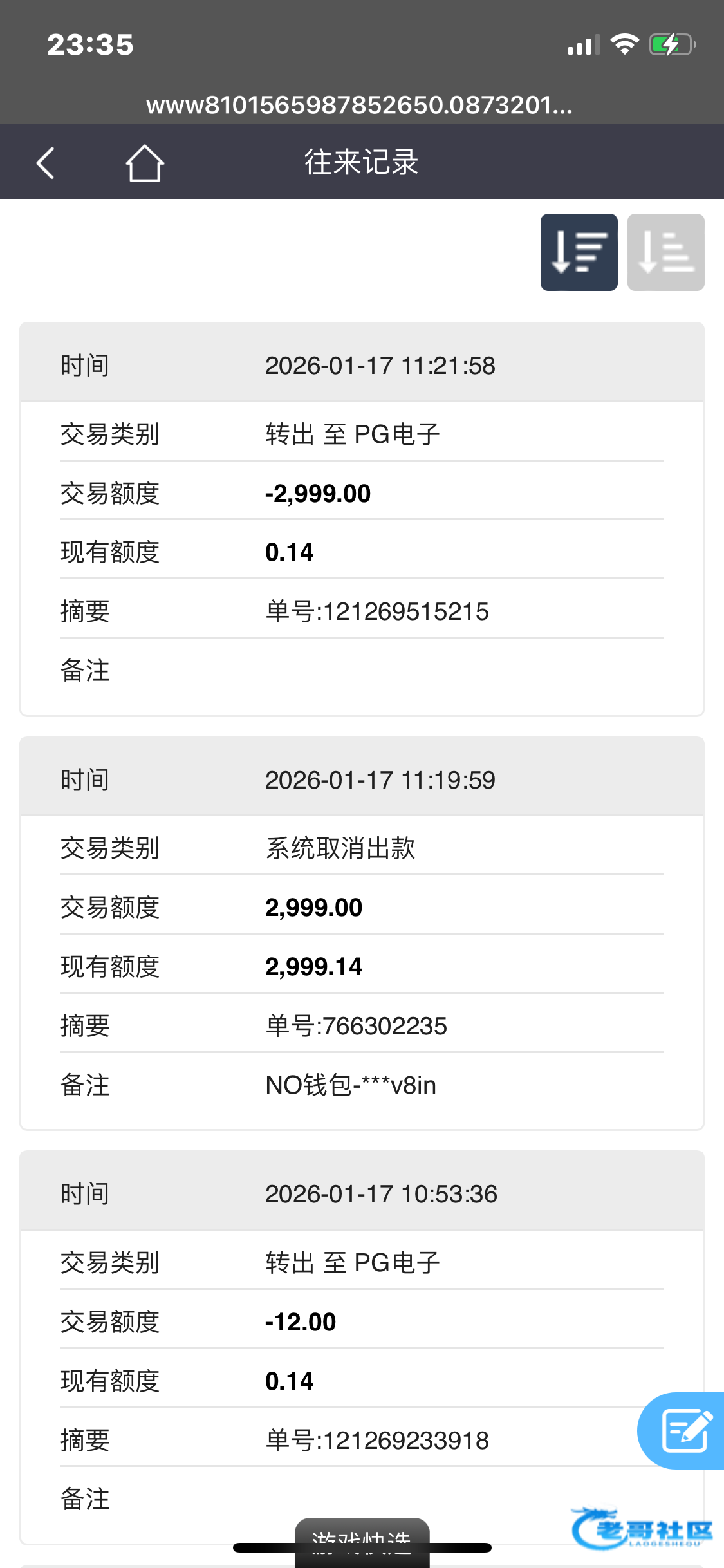 前两天充值了1000打电子还有真人上3000打了最少三四倍流水这傻逼客服说我打一倍流水罚我三倍流水,而且还只能玩pg进免费直接空转一倍最后可想而知连本金都拿不回 这两个逼平台也是老平台了还搞这一出最近还出了个u台老哥注意点