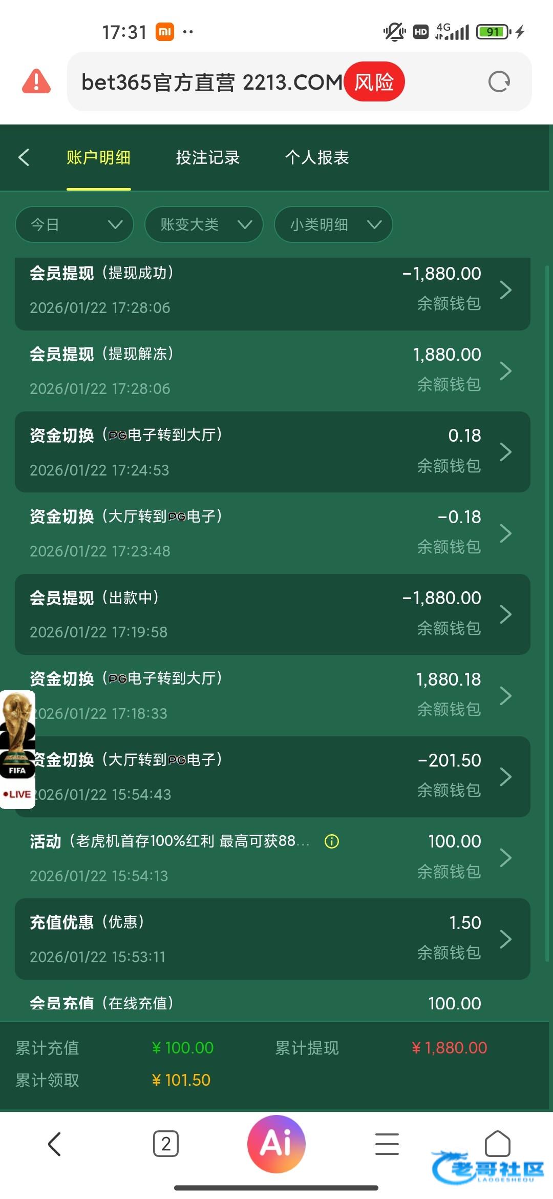 这个台子是462推广的,应该不黑,参加了个1+1,打够流水剩800多想着输到800了提,结果进免费给了个600倍,提现秒到,我草