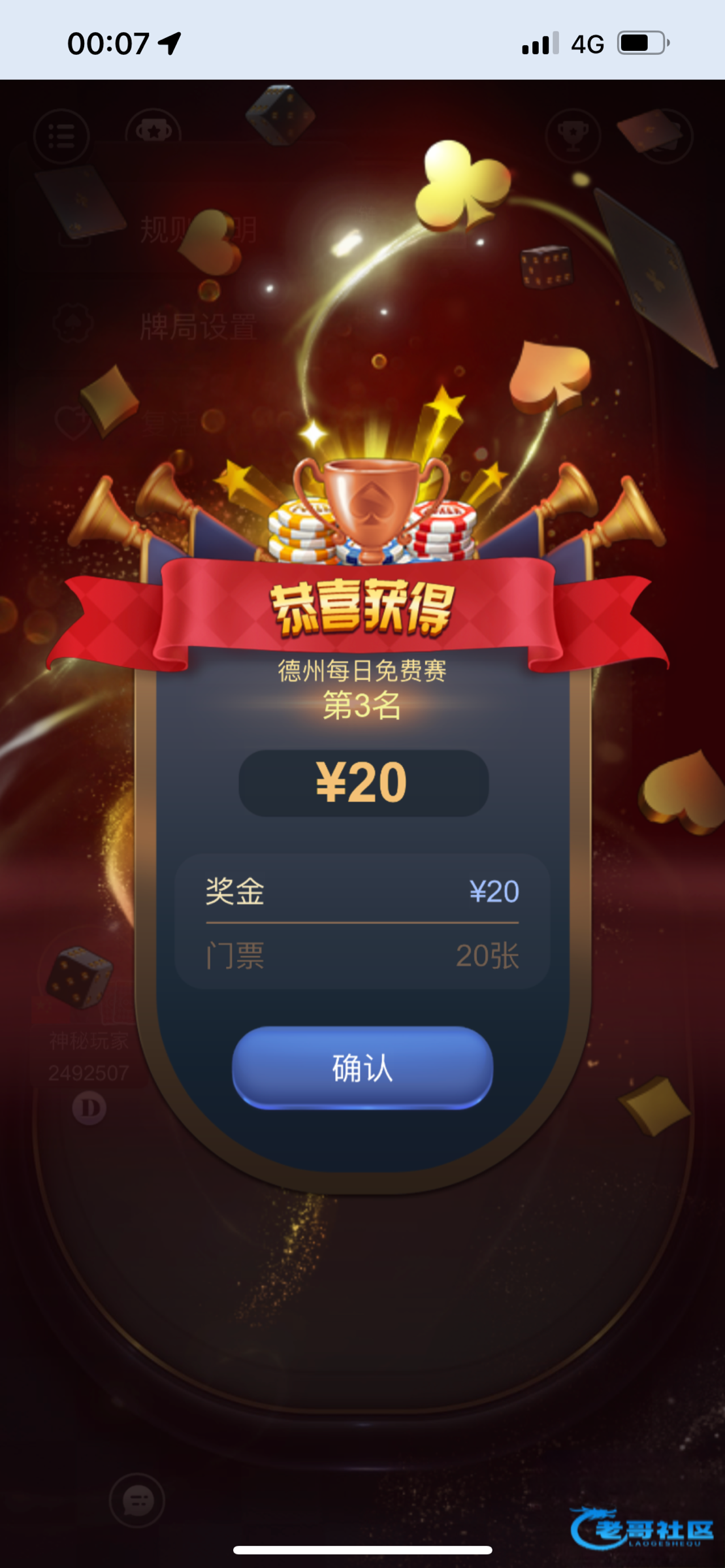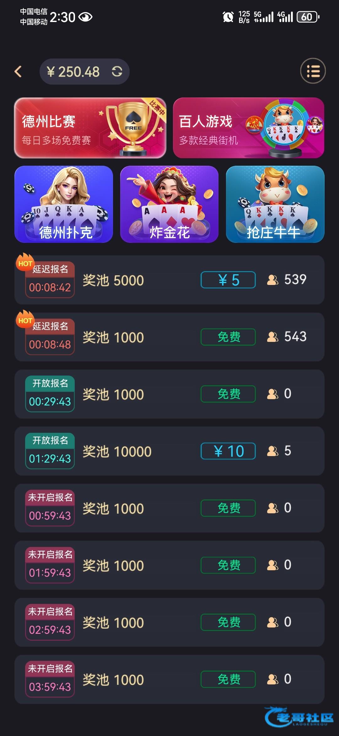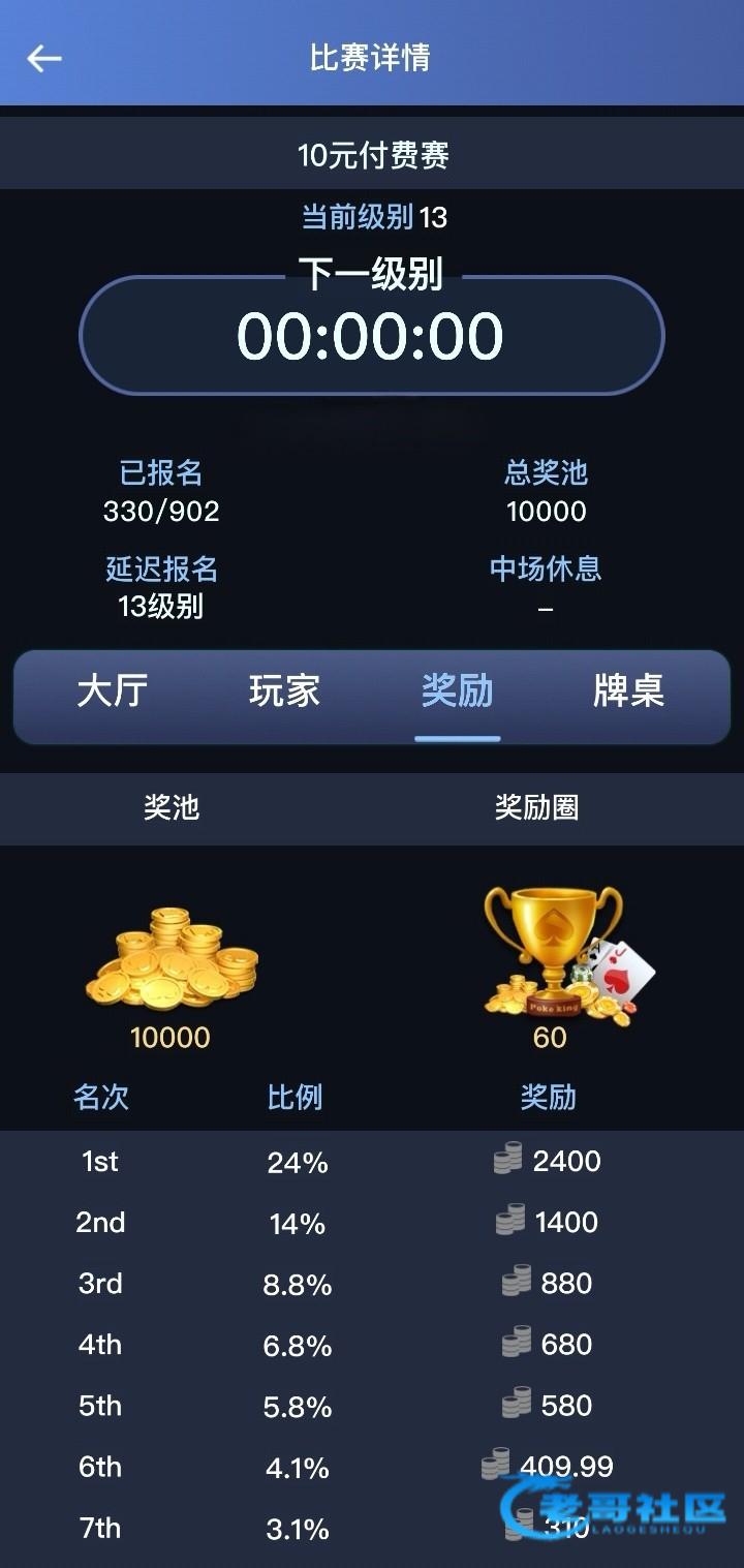 前几天谁发的那个qq德州,打了半天最后要进奖励了,立马给你一把牌干死。前期无限补人,设计的太恶心了。打8.8快速赛,刚开始没什么人,我一直第一,后面就一直有人加进来,最后毛都没看到在最终桌第五名出局,奖励圈是前四
