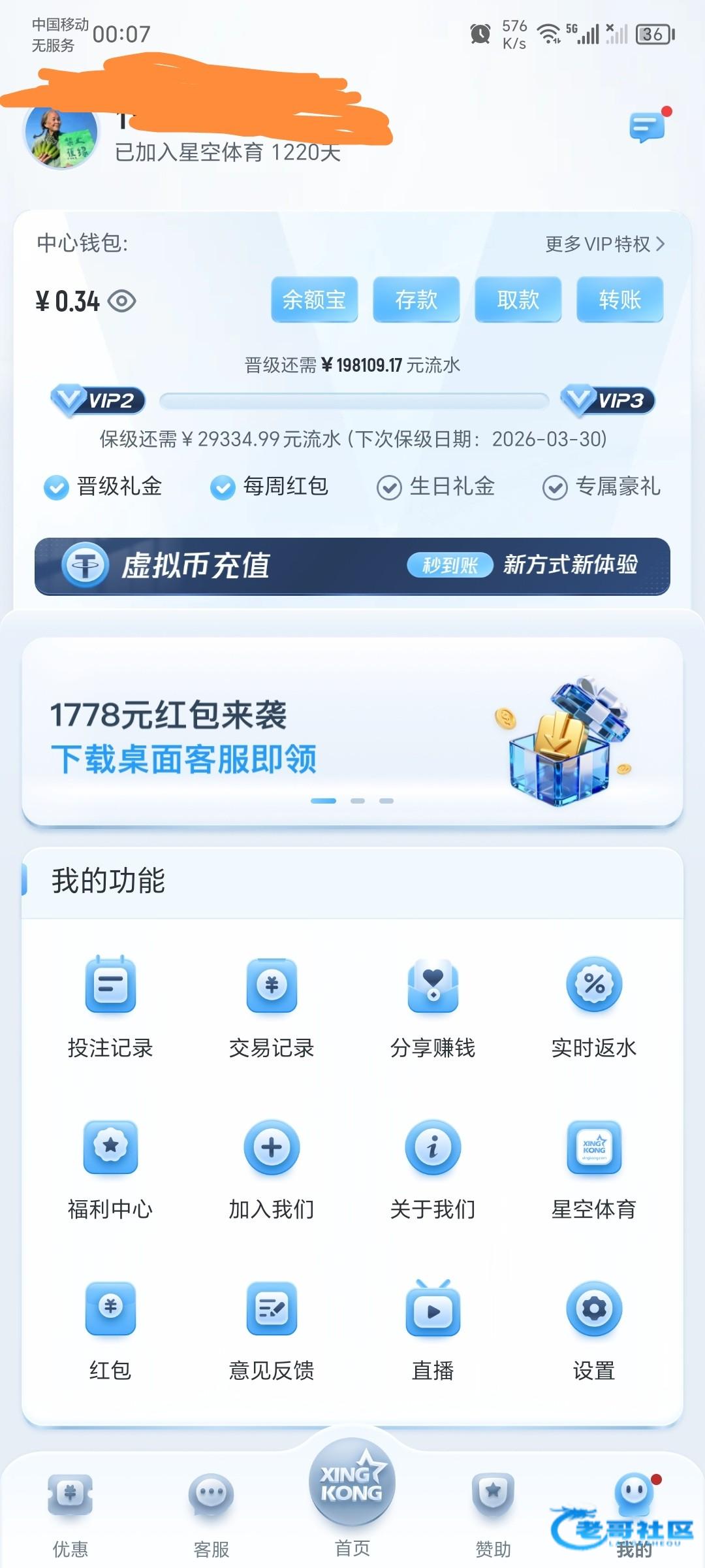 这是我玩的第一个台子,其他博系都把我号封完了就只有这个号没有封,看老哥们这个台经常送彩金,送就是大几百,从来没有给我送过,以前有上级的联系,好久没玩了vip都掉了,很多彩金都是上级给我送,为什么你们送的那种彩金一次都不给我送呢