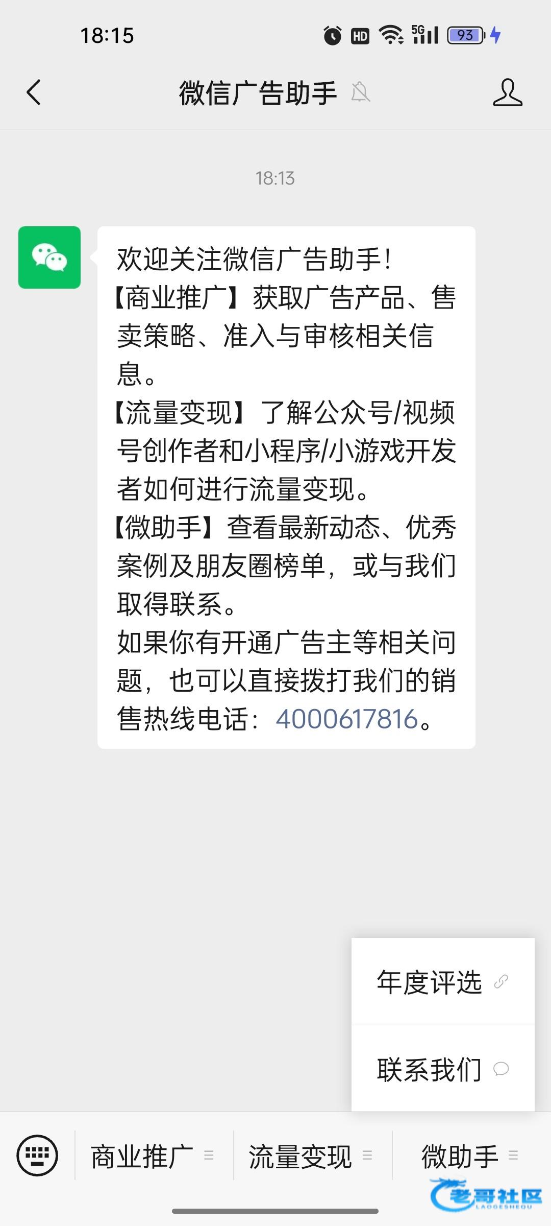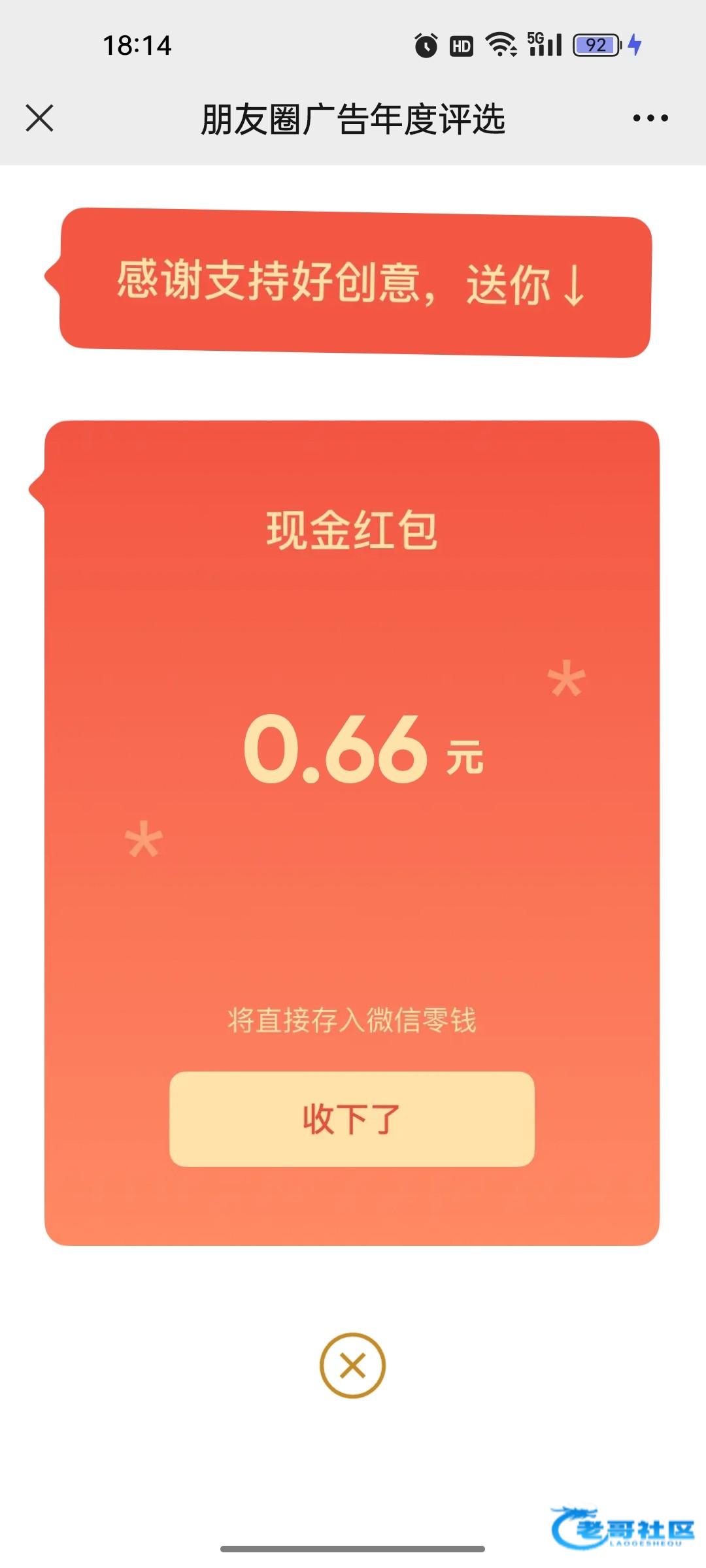 搜索微信广告助手,年度评选进去随便投10个票即可领取保底0.66最高66