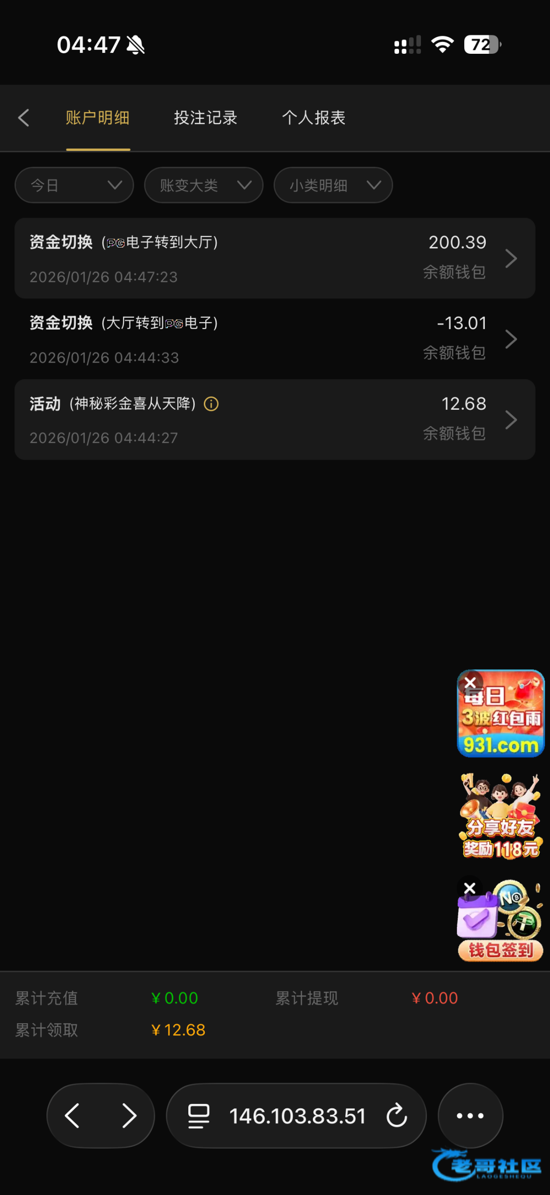 我是收到短信看到说送礼包就上线看看 有就有没有就没有吧 吃200链接www.931.bet