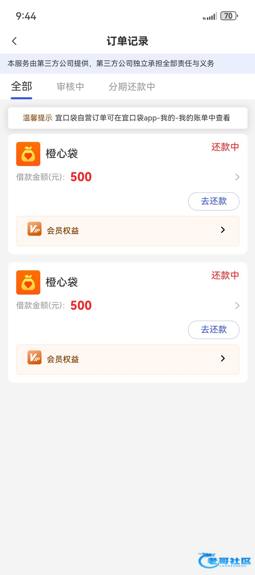 告诉老哥们一个坏消息加一个好消息,坏消息就是扣了我2个56会员费,好消息就是今天申请第二笔的时候2张卡各给我下了1笔500,意思就是我申请了2次,每次各500,但是他给我下了3笔500 ,App只有2笔账单!!应该是卡Bug了