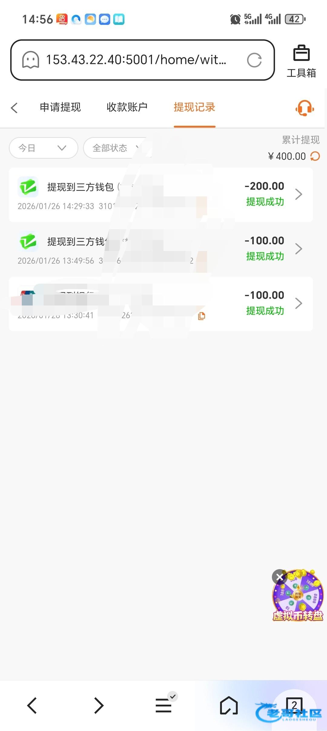 没图片谁踏马的知道 你是充值其他平台 的提现记录发 说是特邀注册送的平台 牛头不对马嘴