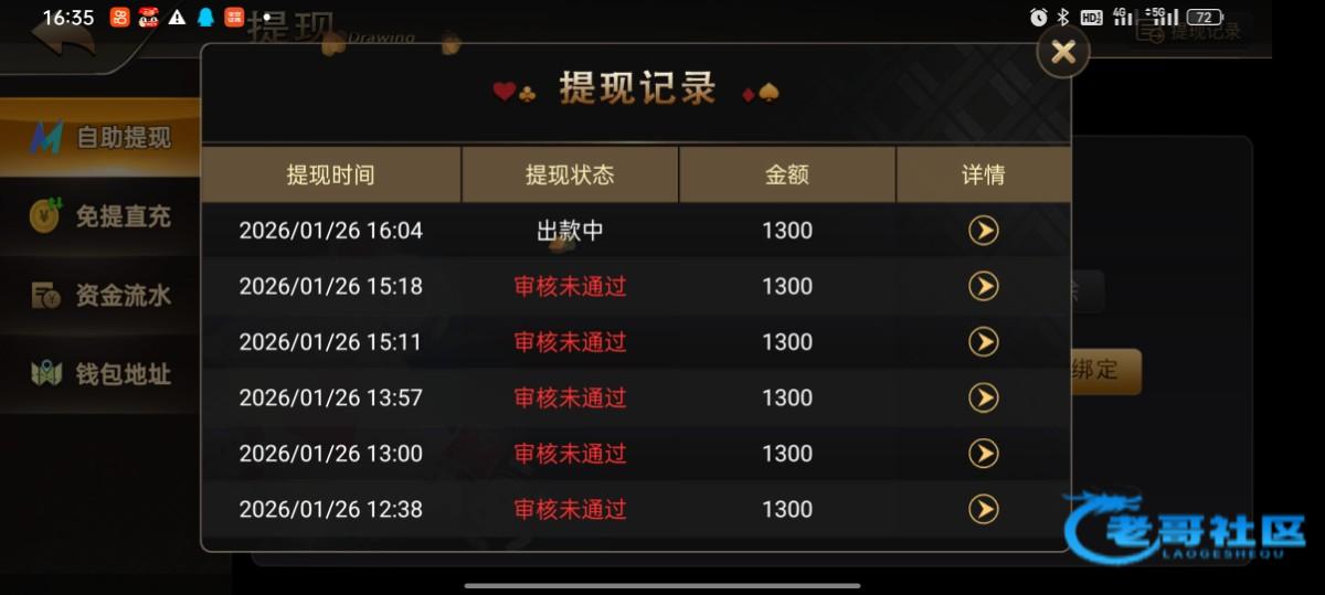 凌晨2点钟到现在,下午4点钟提现,一直退回,想让玩家输到几百块钱提现才不卡款。