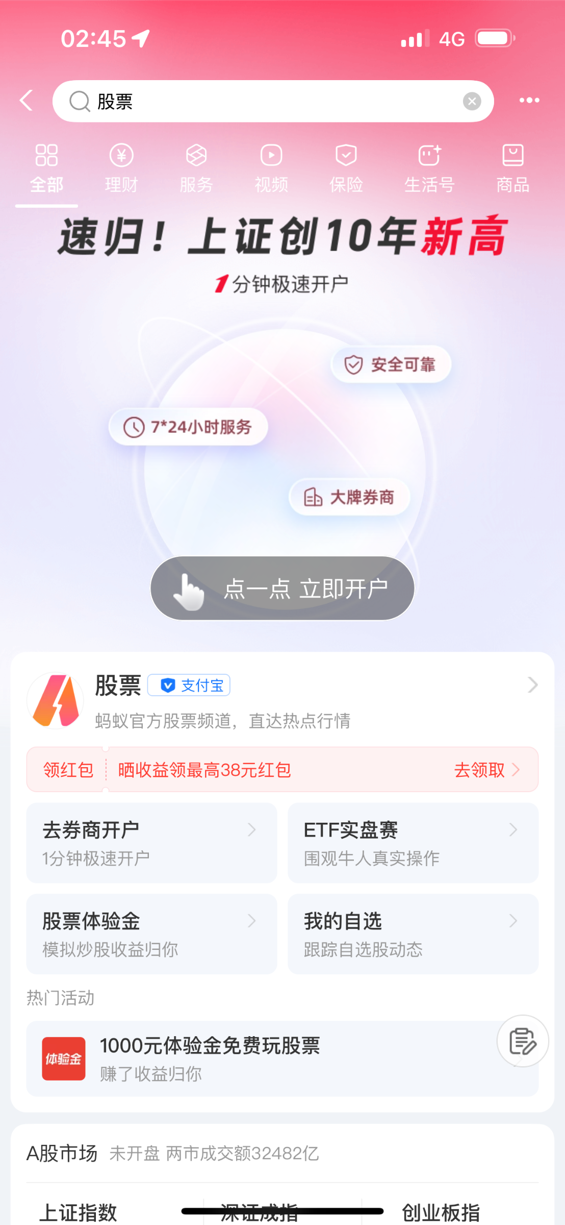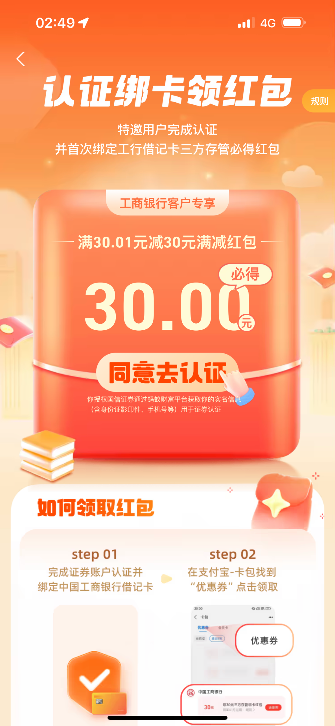 支付宝搜索股票进去就有工行开户绑定送30优惠卷无门槛的 开户好了自动到 审核基本在一天 不知道是不是只能工行
