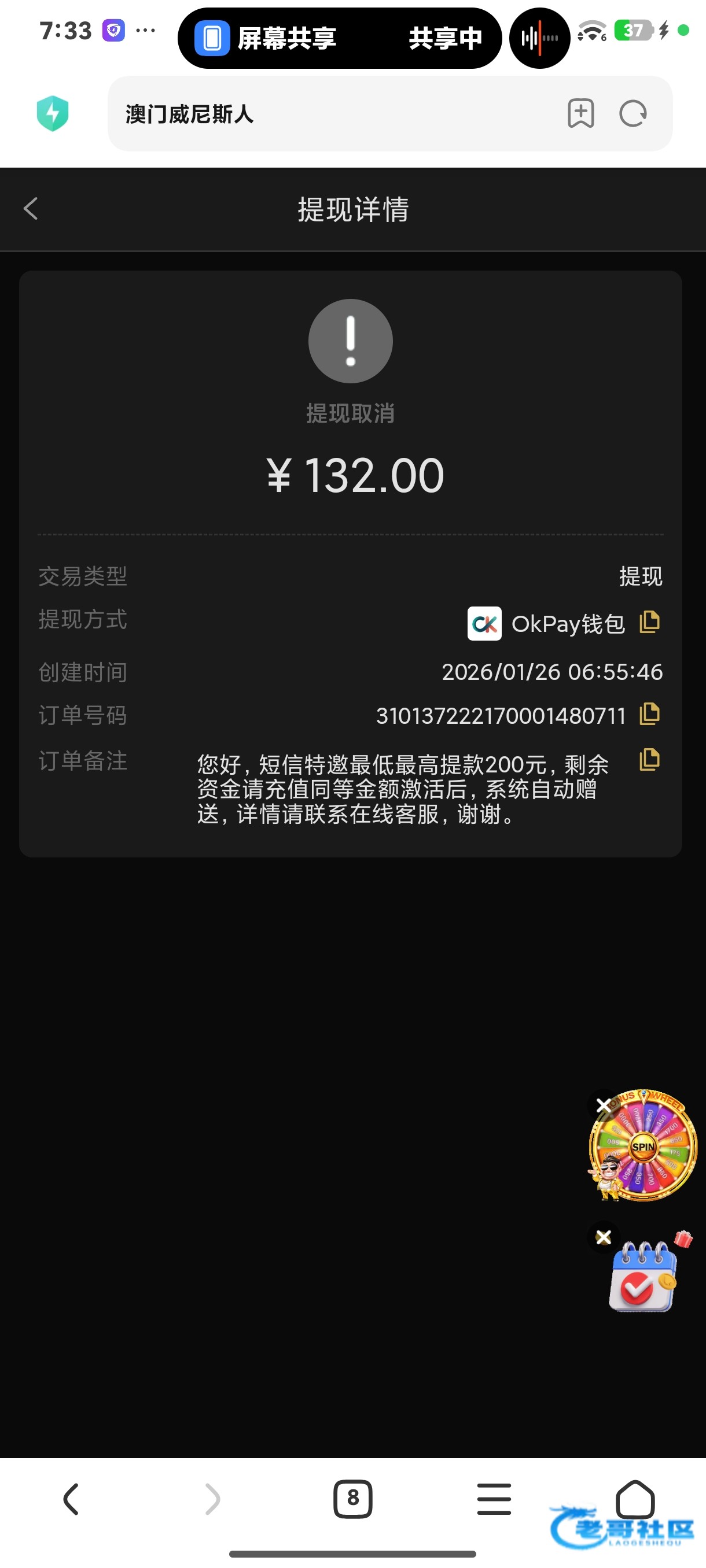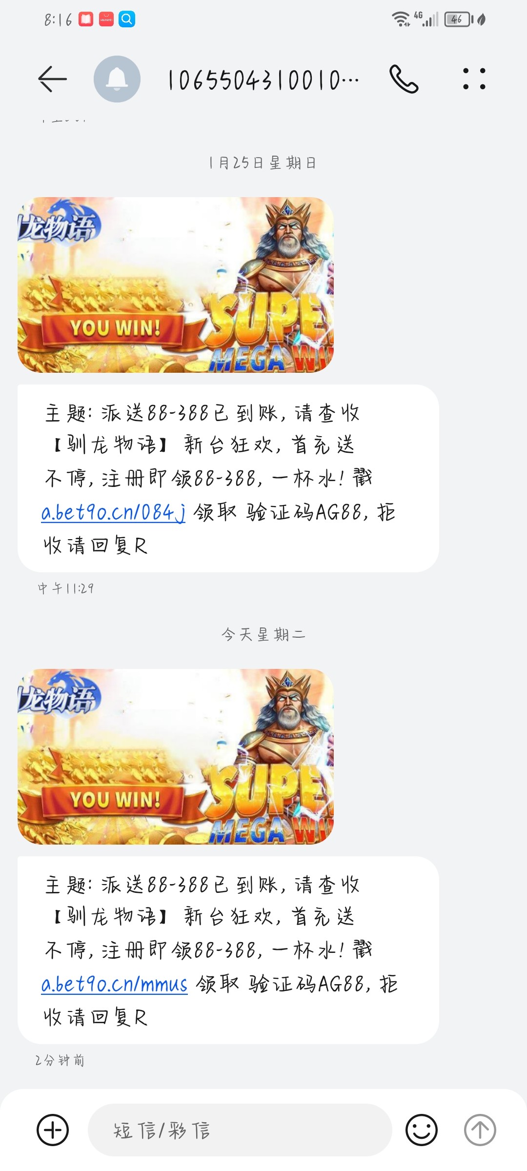 给我发了三次短信刚才拿短信图片去问客服就让我注册 报手机号码之后就给了 给了38 要打5倍流水 只能提现200 或者可以充值同等 不限制游戏 我打没了 去碰瓷白嫖即可 不要先注册可以先去看看自己号码符不符合 符合客服会让你注册账号 直接给你彩金 白嫖就好 充值风险自理 链接VV8.APP