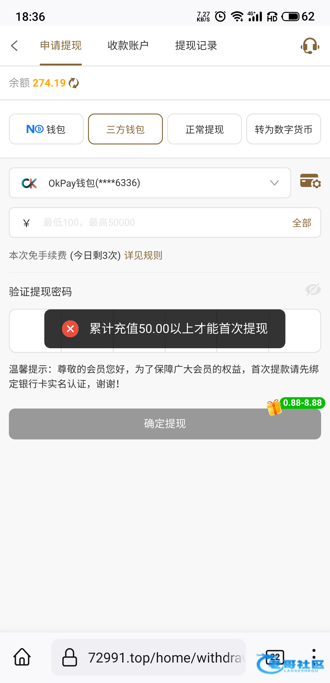 提现显示要冲50这感觉要黑