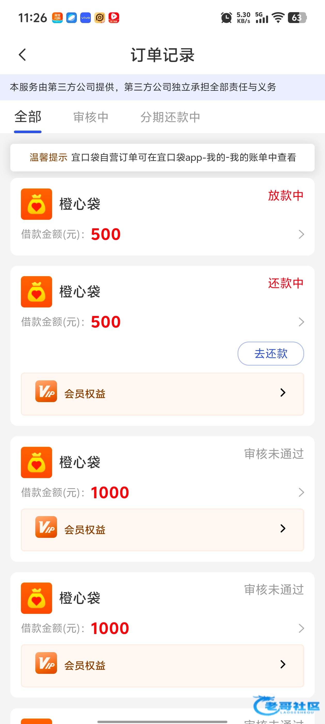 今天还款日橙心袋给下了,之前申请过立减金秒扣,钱让我转出去了,会员费没扣到,接着又申请第二笔,显示放款中了,不知道还能不能下,之前申请过立减金到还款日的可以去申请试试