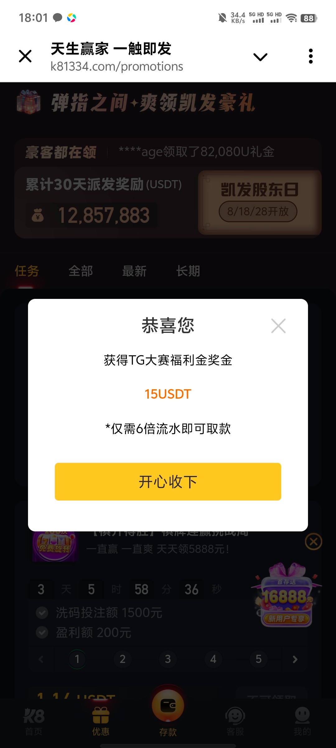亲亲您好 您需要先存入等额优惠金额的存款,优惠才会派发呢~ (优惠6倍水) 客服提供您存款步骤好吗?