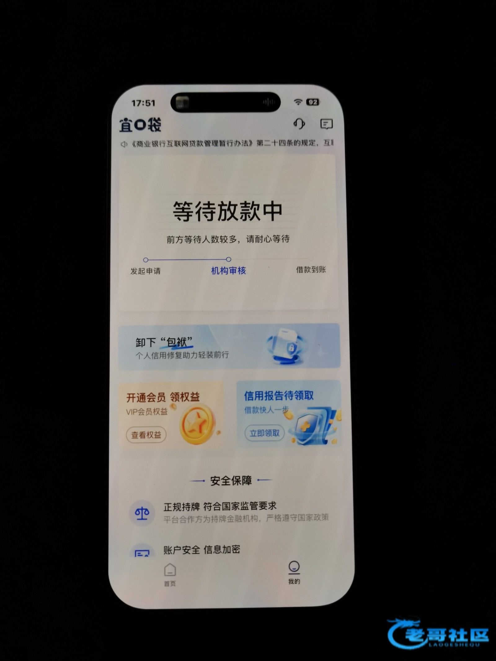 最近看着老哥们都在撸 我也下了一个 填完资料2000额度(1000借款 1000购物),借款1000秒拒,过了一会发短信说只能借500,完事点借款500也开了先用后付 就一直变成等待放款中了,一天还没动静这稳不稳啊?