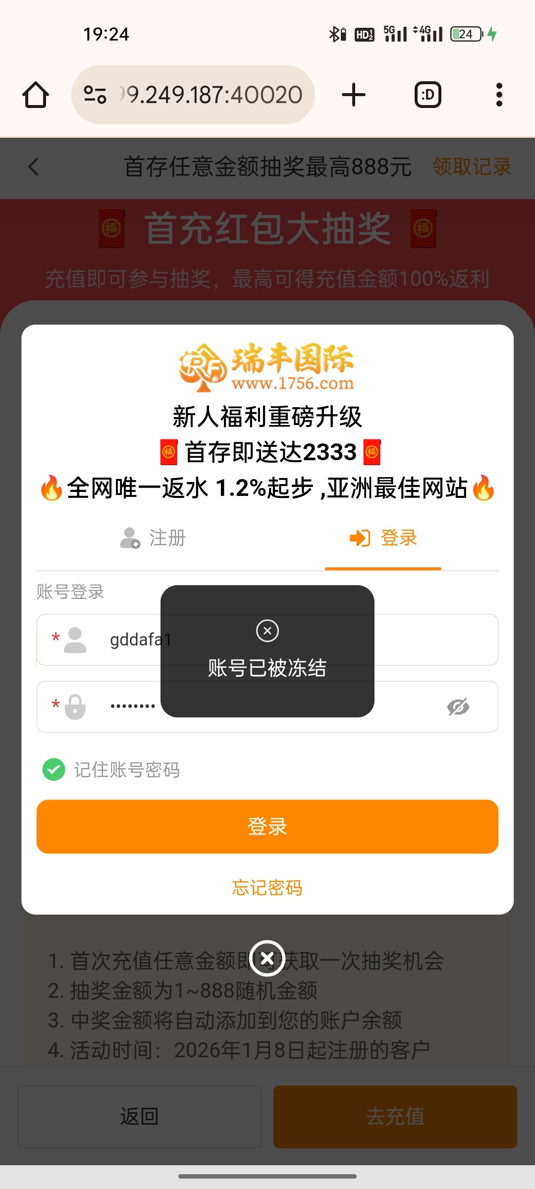 瑞丰领188,到我这里充值100直接给我冻结拉黑了,曹尼玛