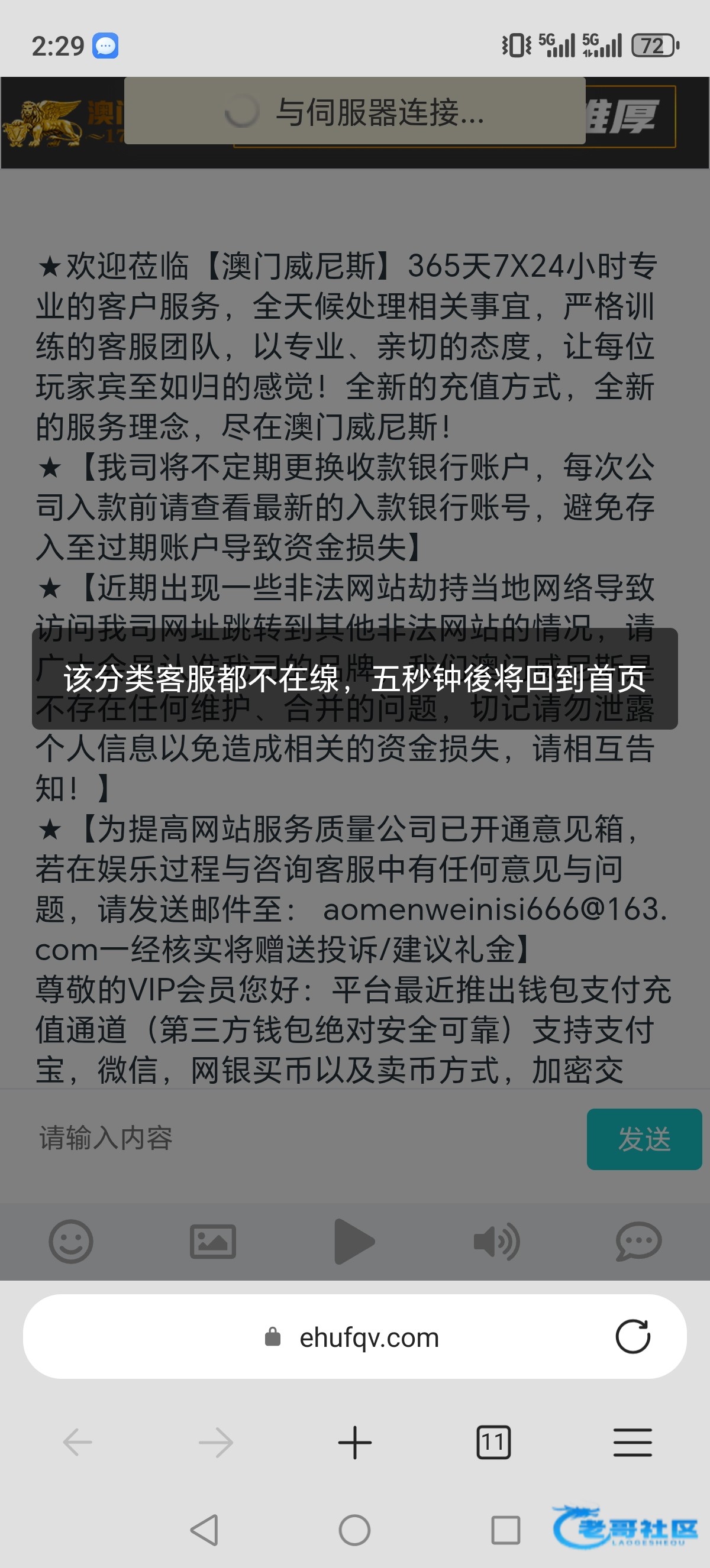 该客服分类不在线,五分钟将自动回到首页