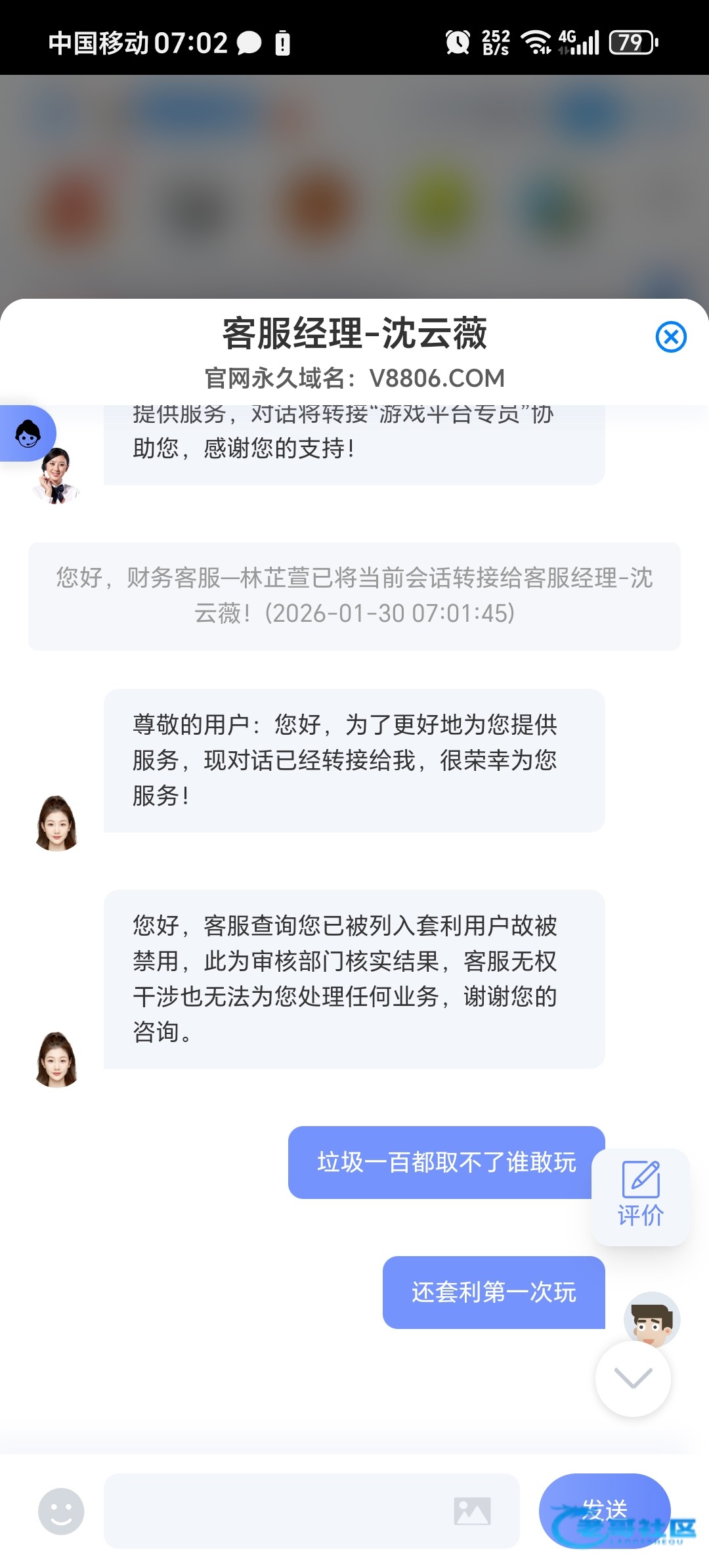 qddya123 ▶ lj8888666 我也是这样的,客服说我非正规操作。 您好,由于系统检测到您使用该账号存在非正规操作行为,因此自动限制了您的账号登录权限,系统限制登录的账号是无法解除的,若后续您使用新的账号进行游戏请严格按照用户协议进行操作!避免影响到您的游戏体验!感谢您的支持~ 2月前