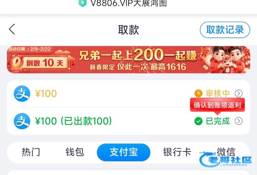 秒到账,又吃上100,感谢楼主,感谢