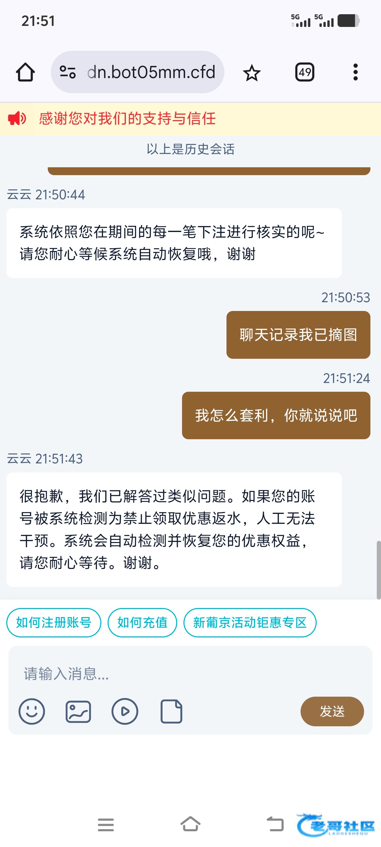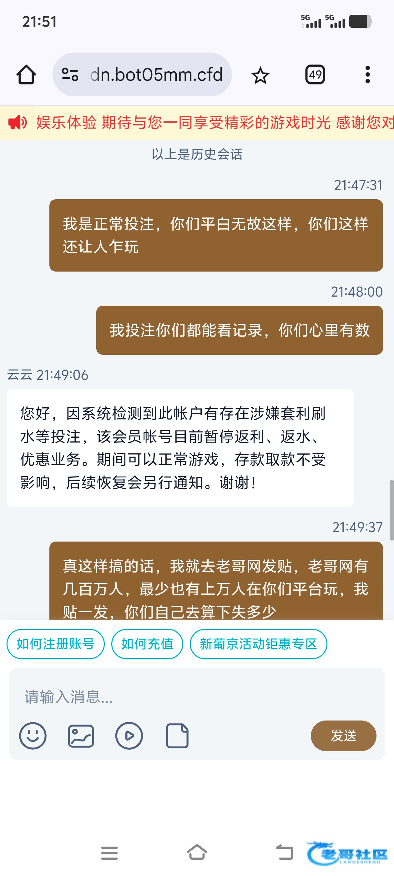 情况是这样,我是从2024年在这平台玩,我平常就买时时彩前三,和六合c,跟pg.pp,从来没有乱投乱搞过,等级是vip4,在这平台玩了差不多2年,总共差不多输了20多万,然后就在前天,平白无故封我优惠,跟vip等级,我每天可领反水差不多20多30元,但全都输,领的水也从没出过款,就在前天就款我优惠,说我套利,我呵呵了,下一步就要黑了,审判官,放在交流贴,谢谢,