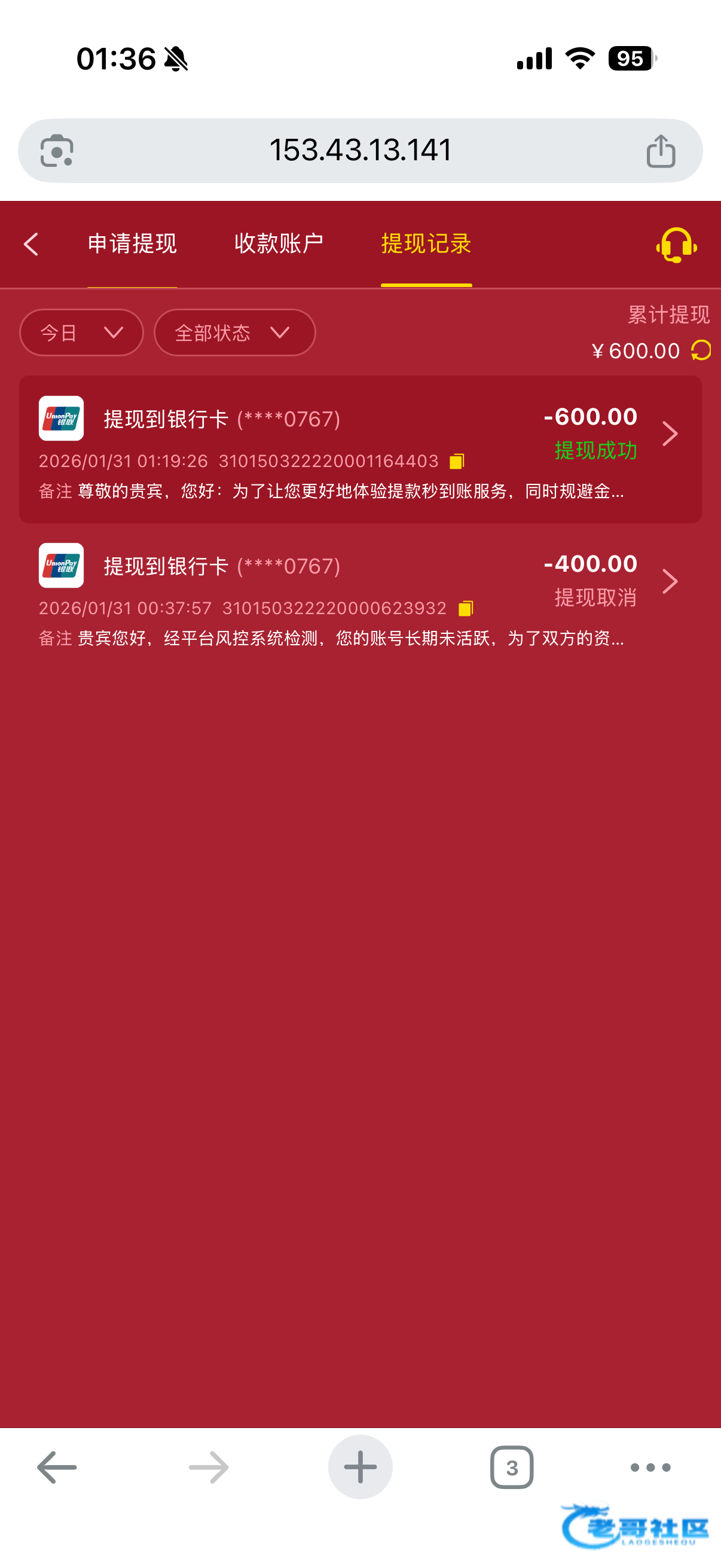 韭菜 ▶ 韭菜 提现一直不到,估计黑了妈的逼!不知道黑给不给退本 2月前