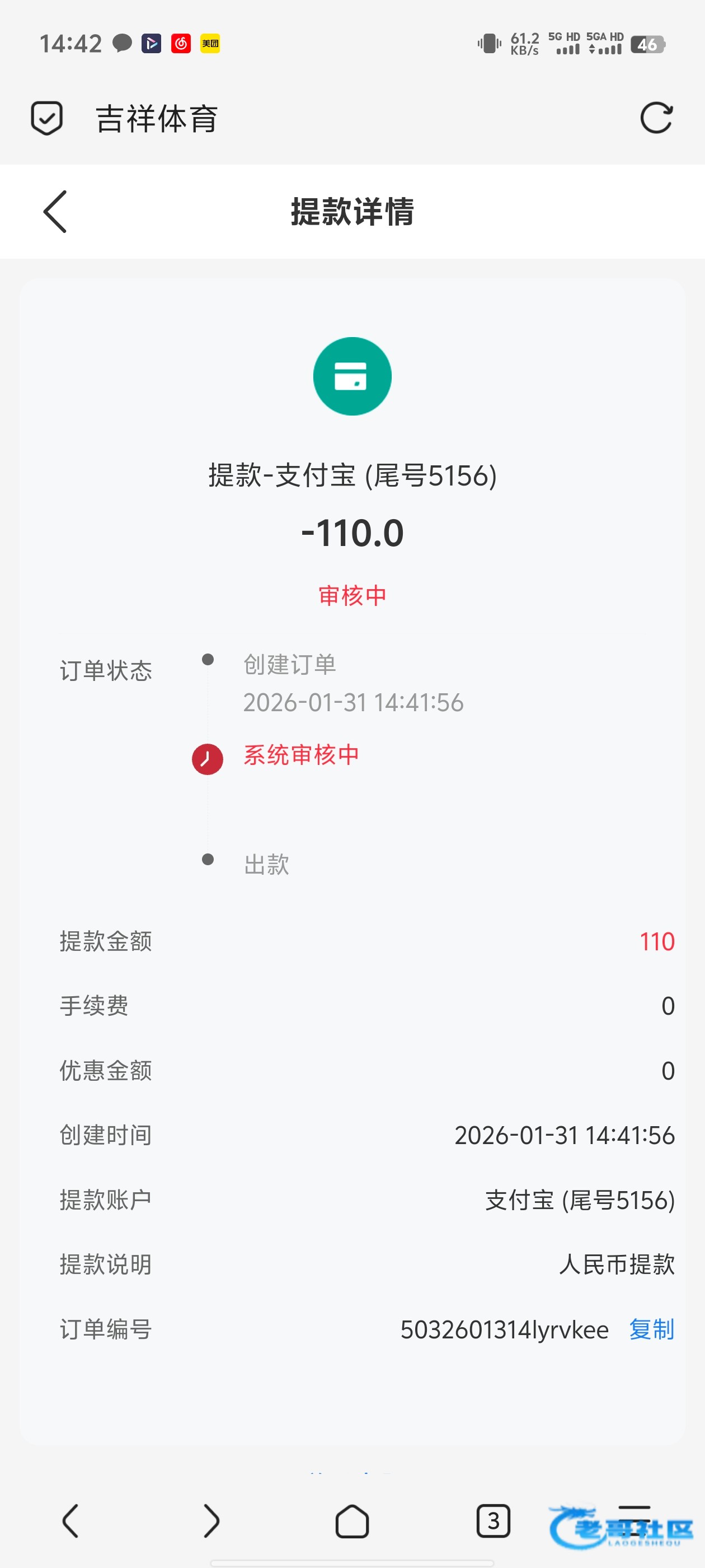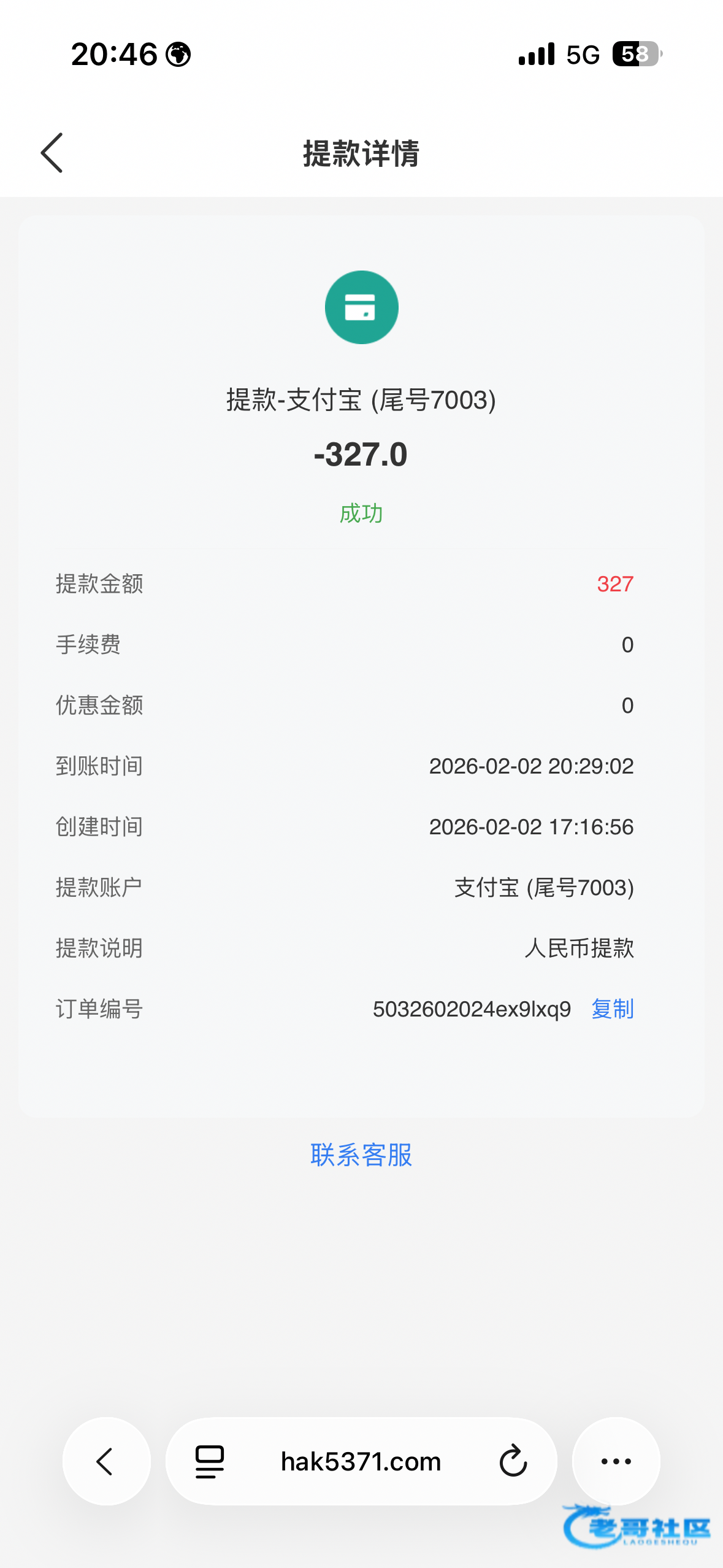 差不多5个小时才审核完到账