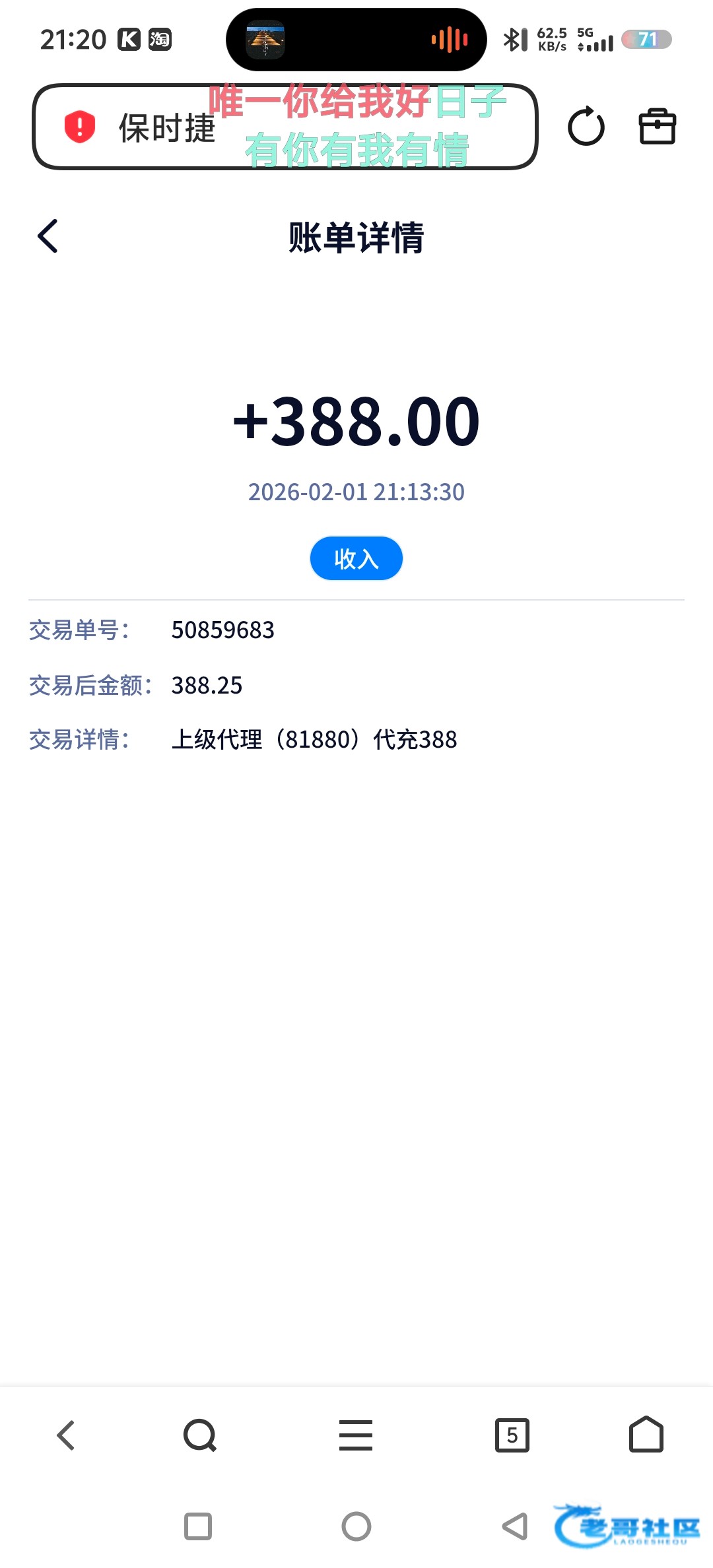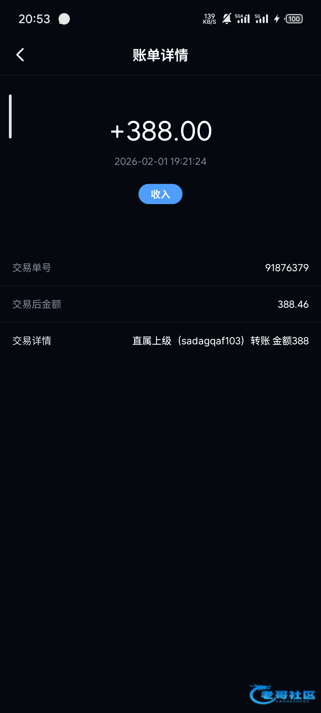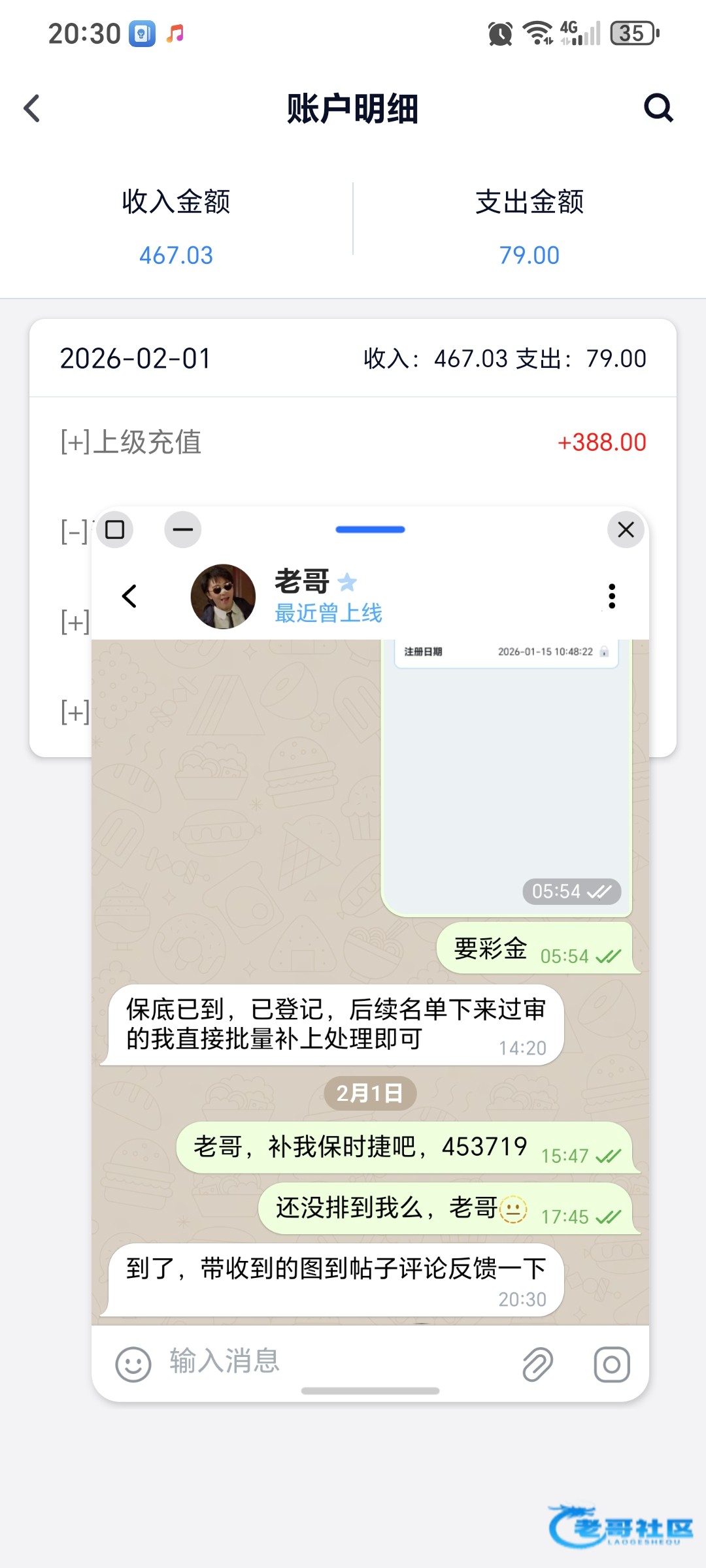 收到老哥388补贴,老哥大气