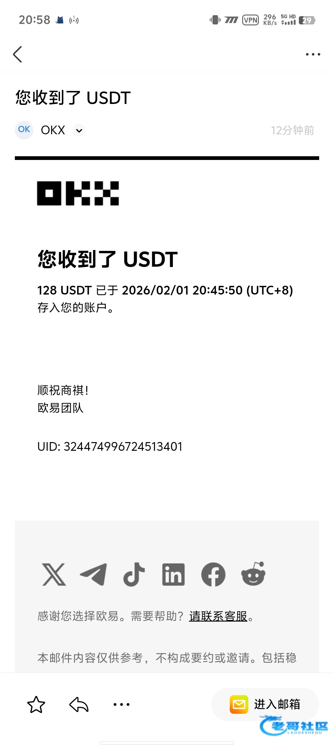 谢谢老哥,收到188返现