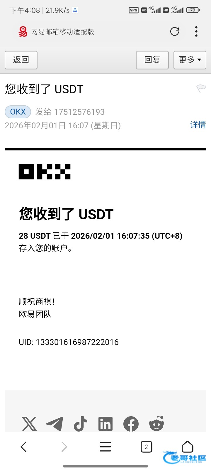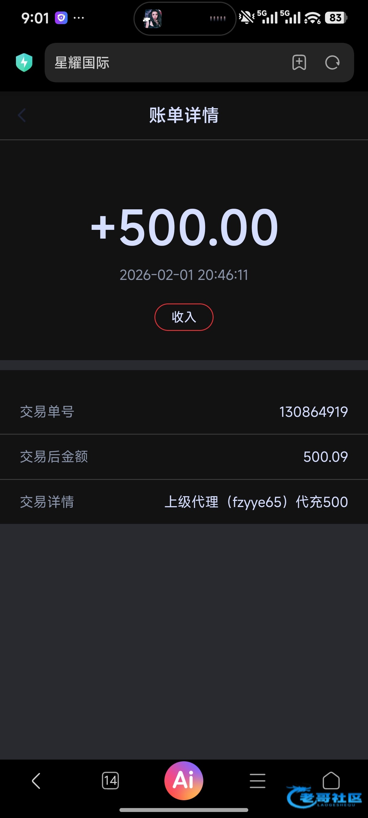 收到老哥反现 老哥nb
