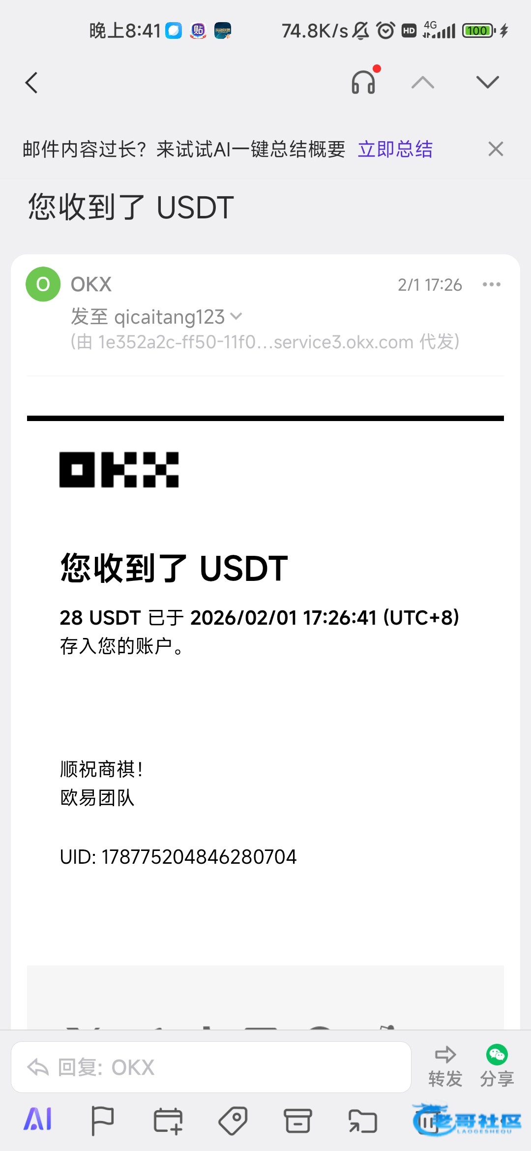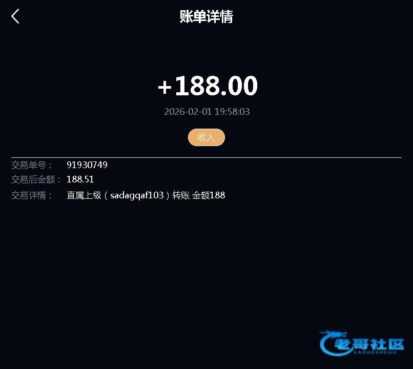 收到188,老哥稳