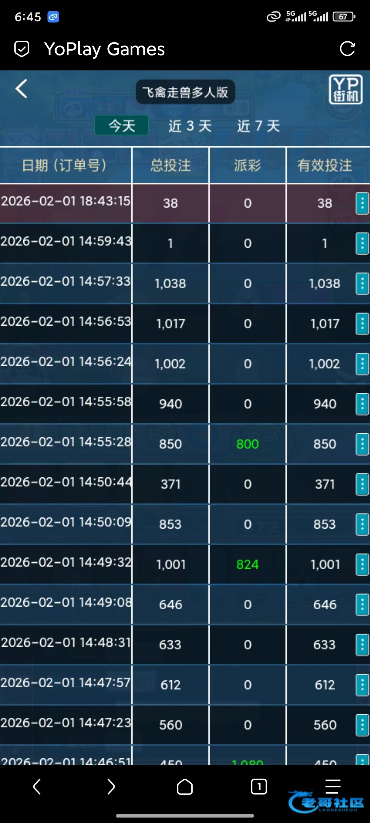 pa唯一公平就是所有台子开奖结果一样,今天森林舞会超级龙,狮子熊猫多到我眼睛都要掉地下了,换平常的我,估计能赢几十个,可惜胆子越来越小了,以前2000打熊猫,一把几千的下,想想真是恐怖,我最大单注中5万