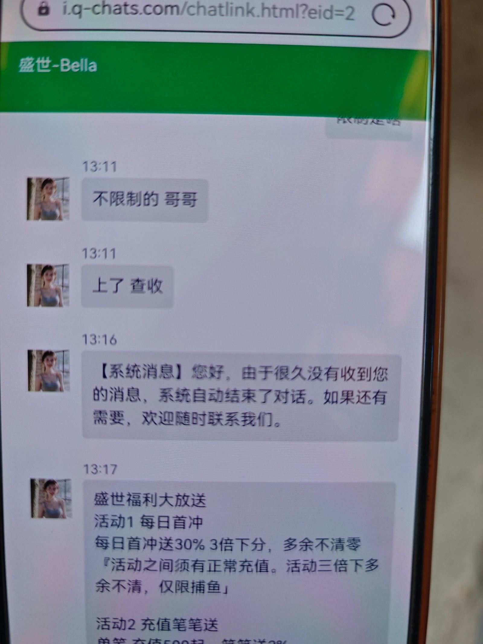 打电话来的,送158,3水下300,多余扣除。不限制游戏。我没打出来。网站是ssyl886.com注册推广码是388888你们自己去碰瓷试试看或者打了电话给你们漏接了。