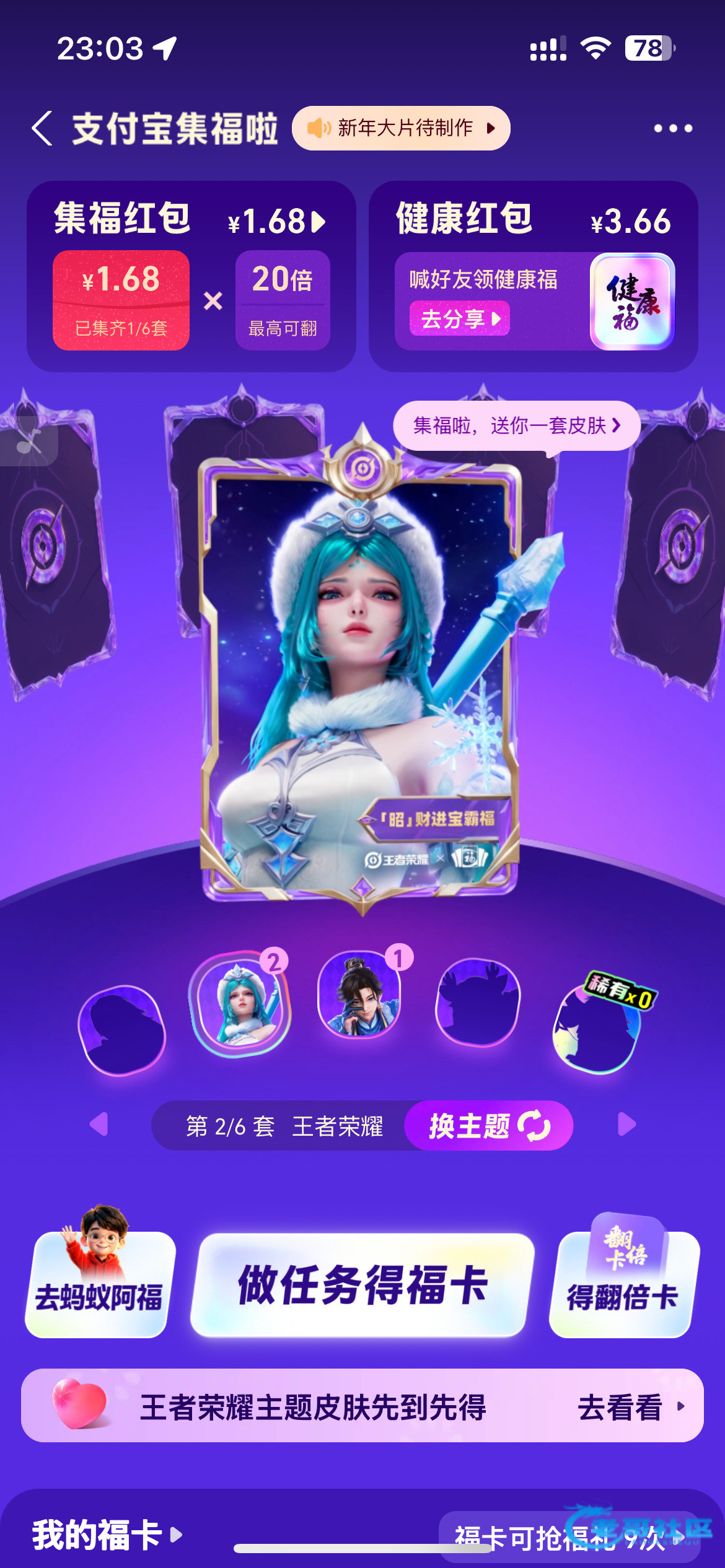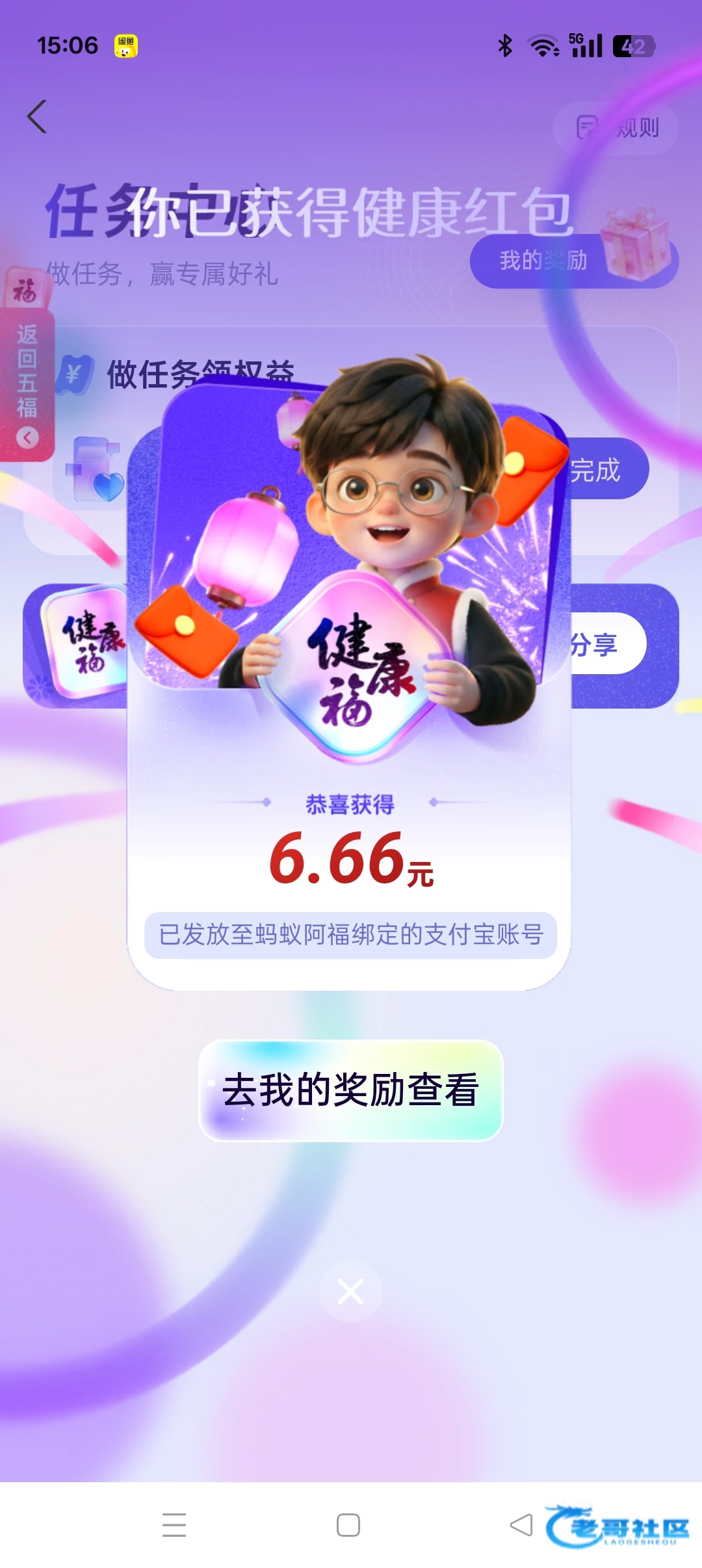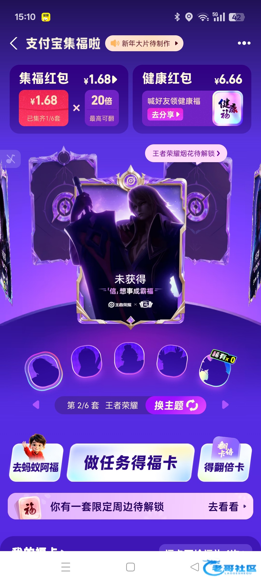 五福红包是1.68,点旁边那个健康红包,下他会提示下载蚂蚁阿福领取最高16.66