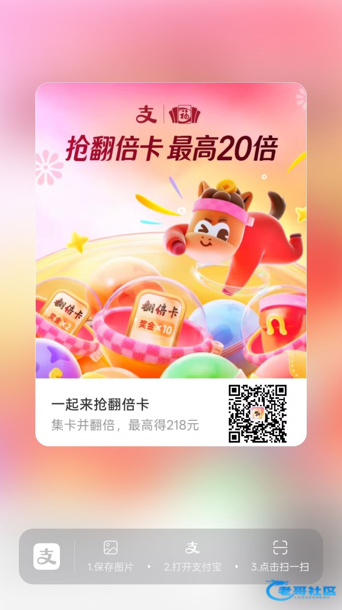支付宝搜五福红包,随便点点就能集齐一套合成以后会跳出来下载阿福送16.66 下载蚂蚁阿福支付宝登录就可以基本就是一个牛子