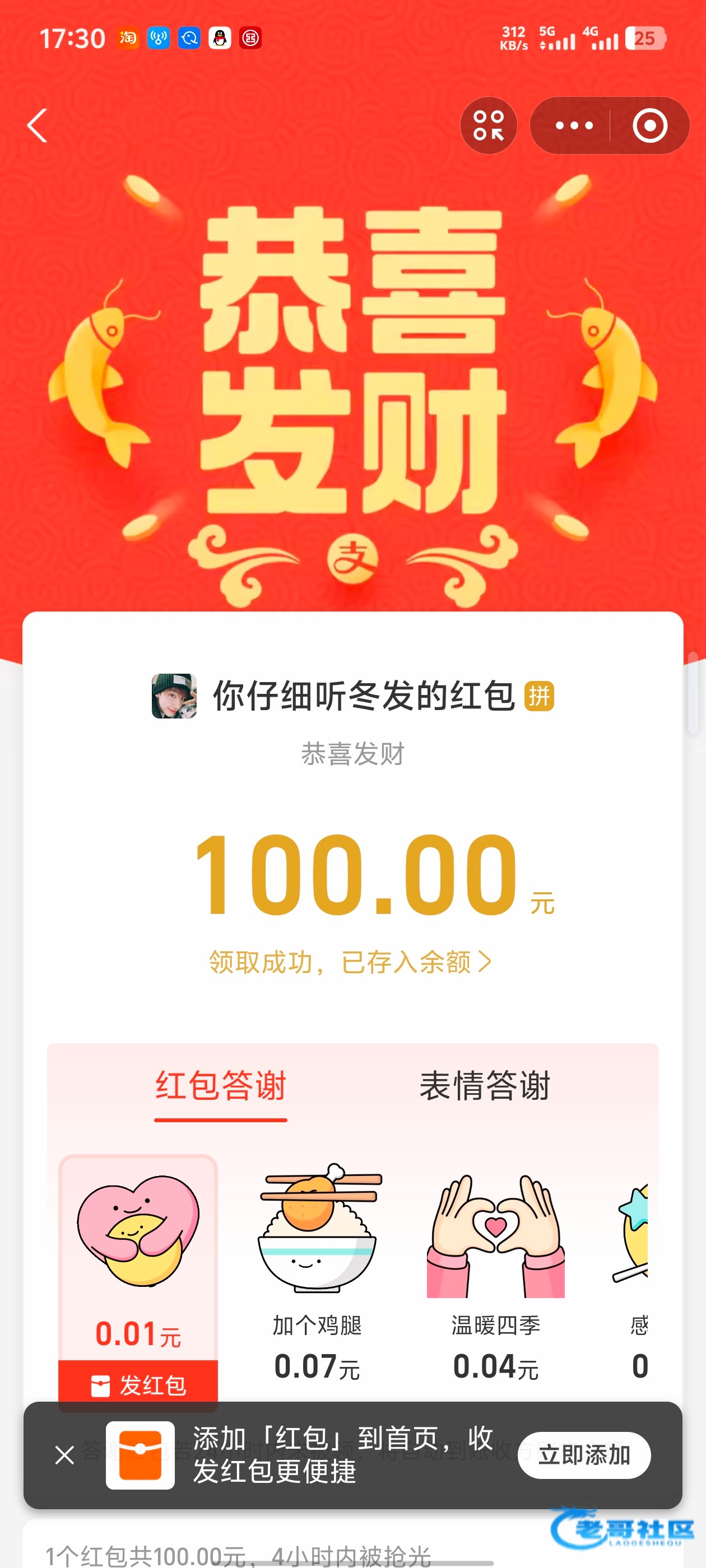 非常感谢保时捷老哥的一百红包