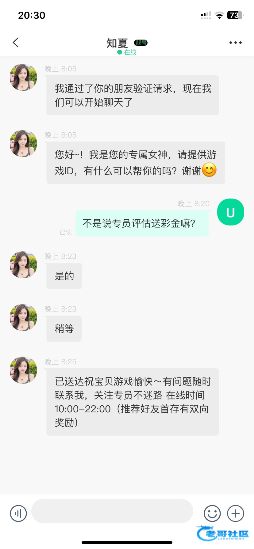 下载聊天软件添加专员客服 然后申请女神彩金