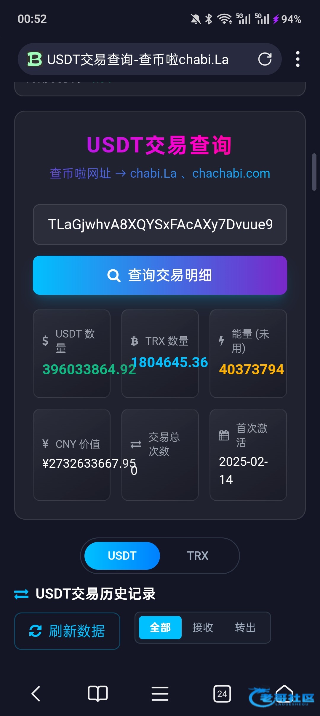 刚刚看见有个老哥发了 查u都地址 狗日的 天庭系 这么有钱 放了他妈二十个亿 TLaGjwhvA8XQYSxFAcAXy7Dvuue9eGYitv