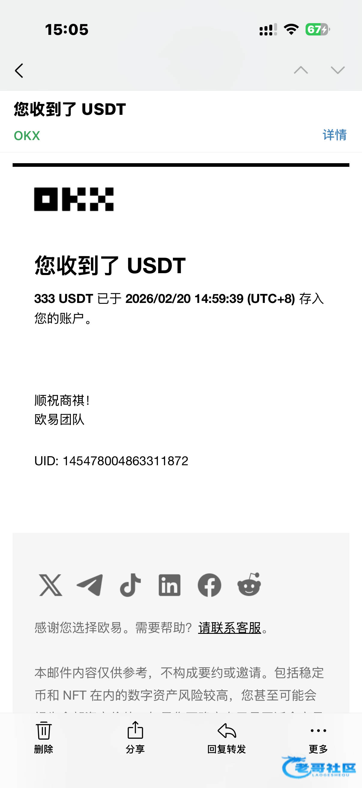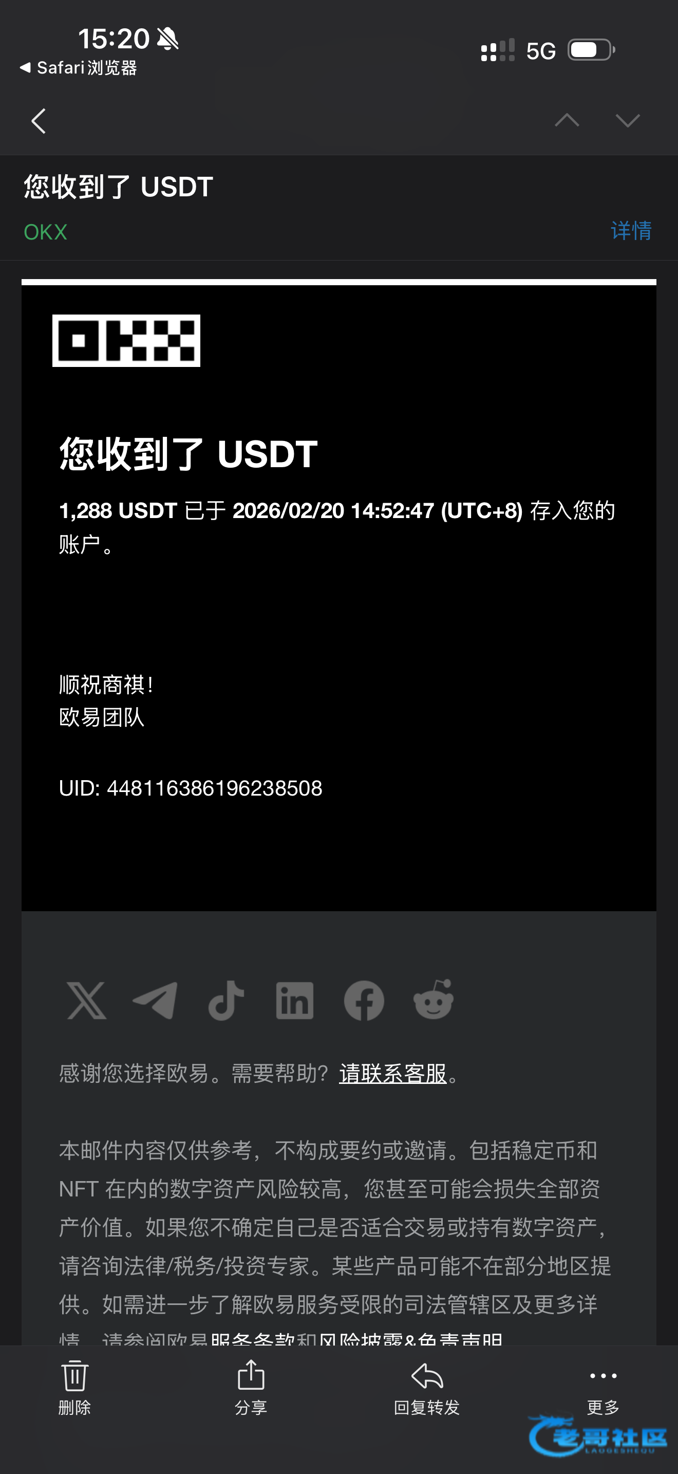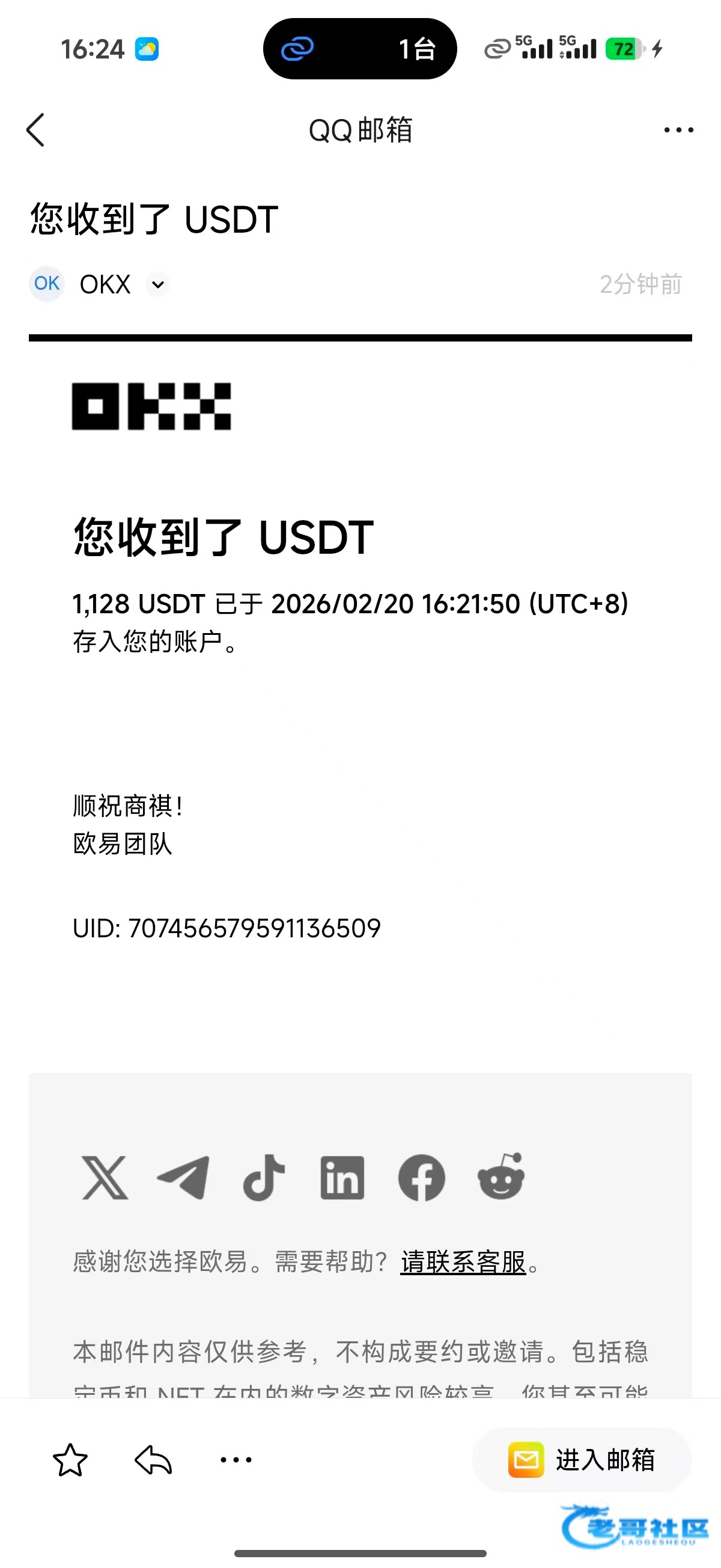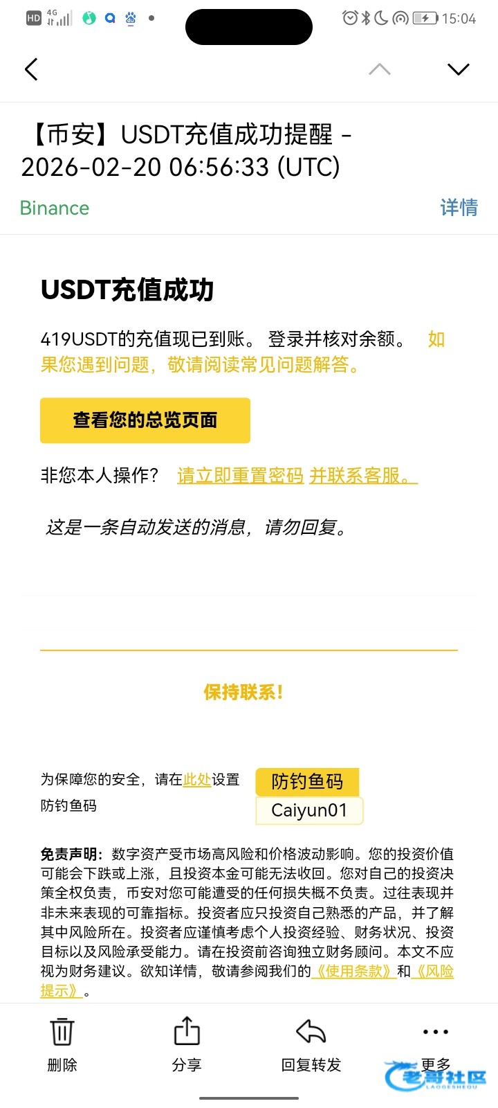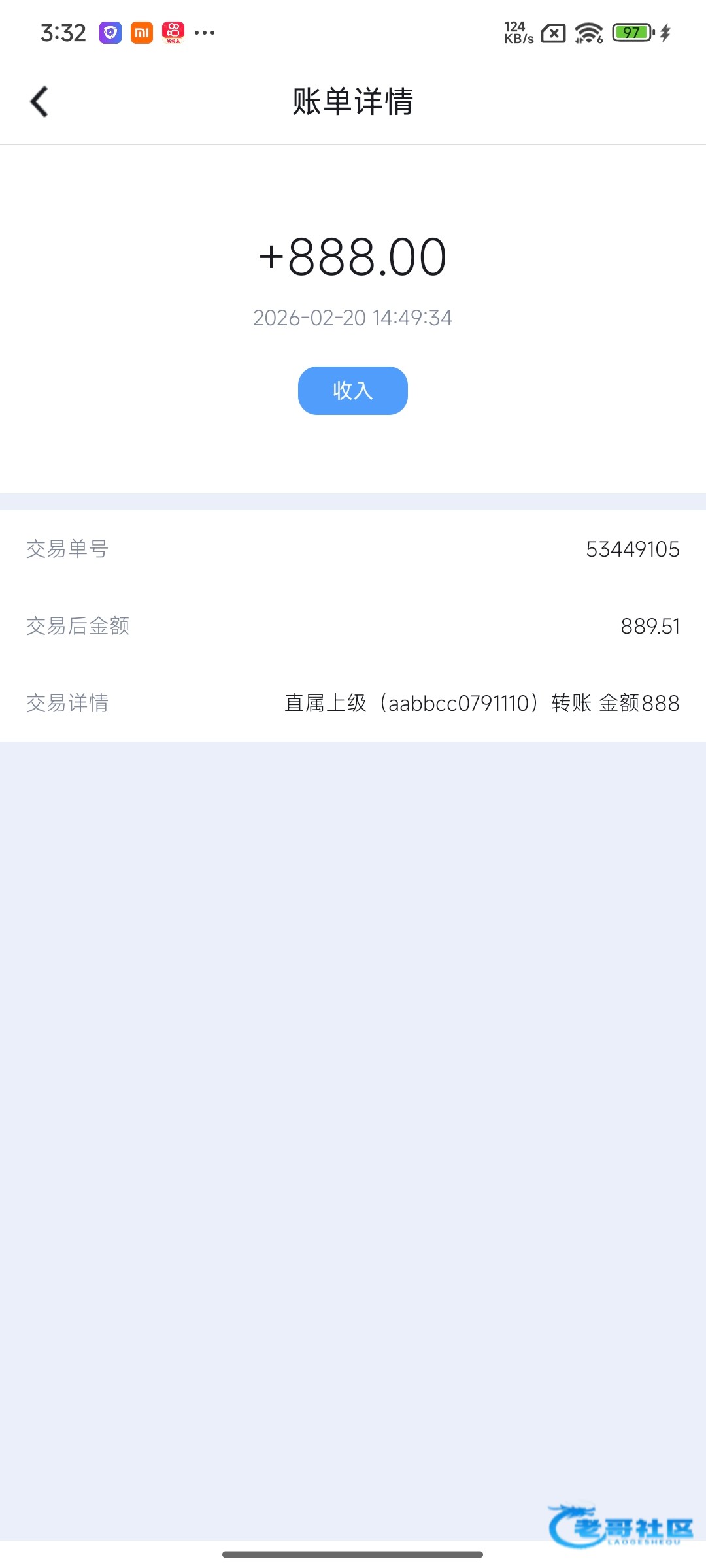 收到活动三老哥返现2888感谢老哥