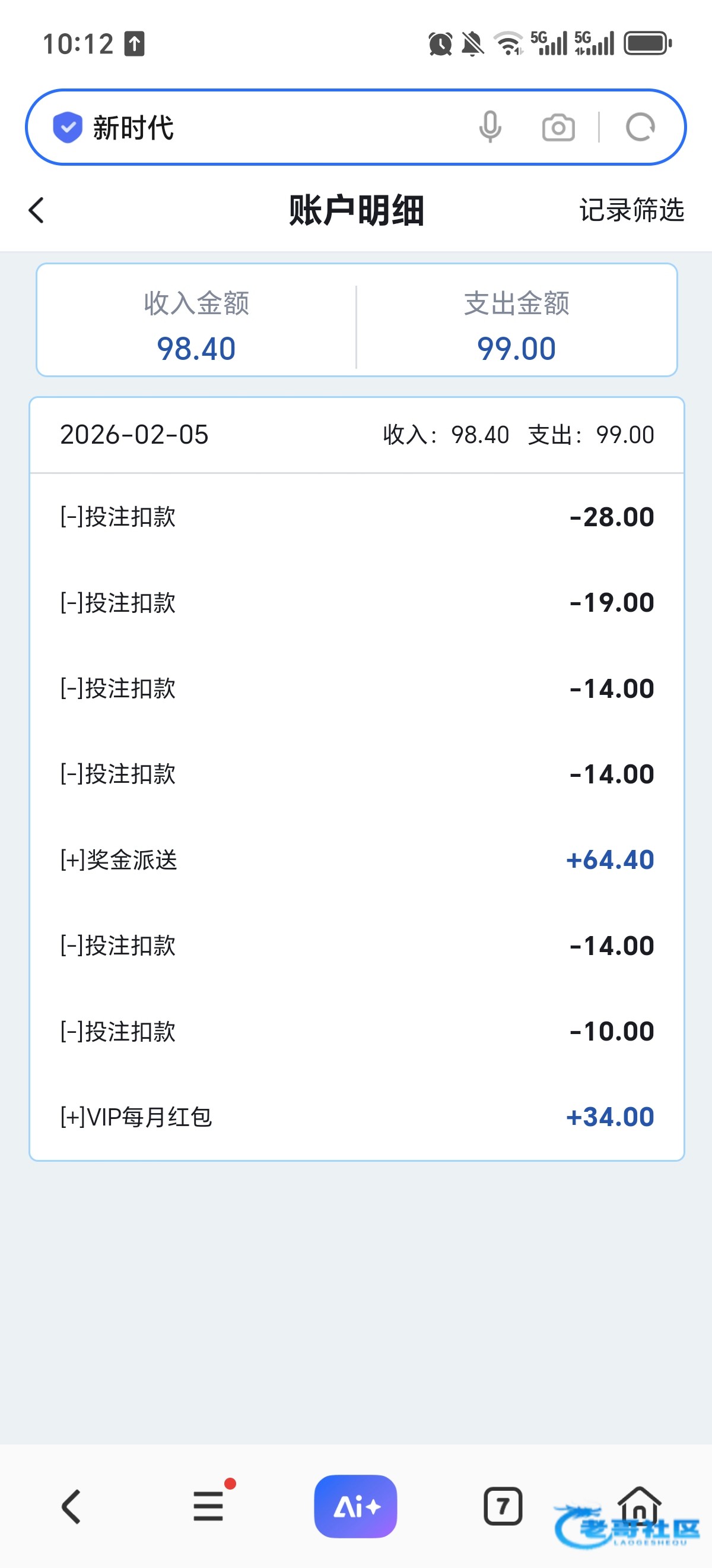 新时代34月彩金打了170只能提100。还有70多输了。