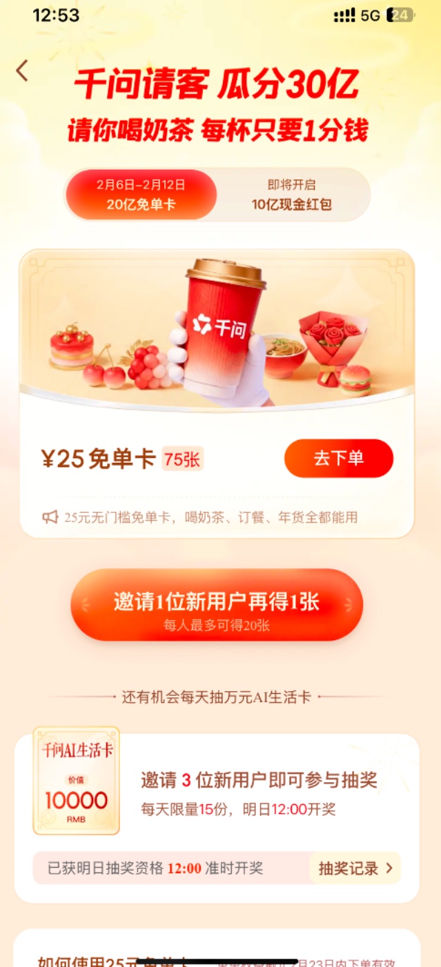 【千问白嫖奶茶炸鸡等等】