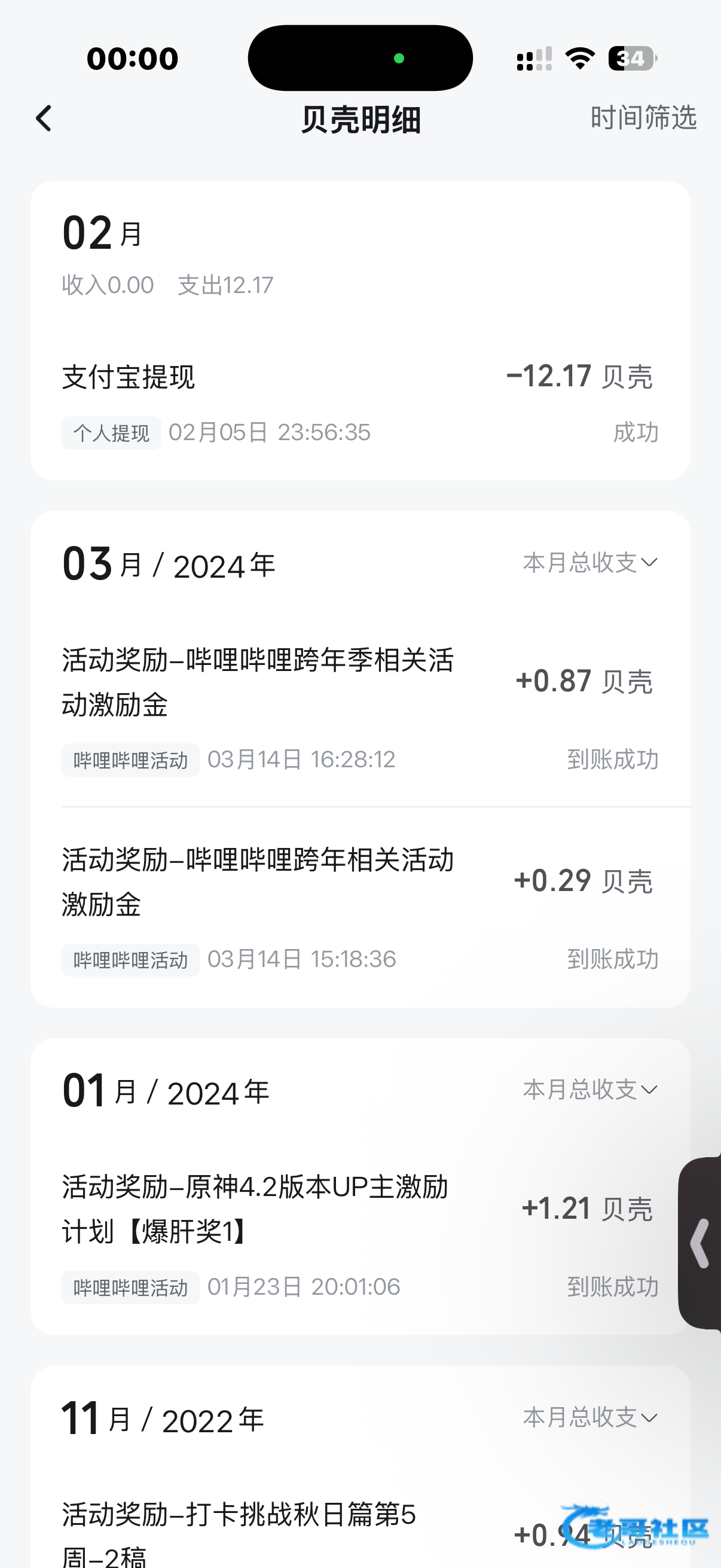 两年b站参加活动发视频骗播放量一周能薅个三四张 刚刚上线点开创作中心发现奖励过12个贝壳 居然能提 b站发过视频的老哥可以登上看看有没有漏的
