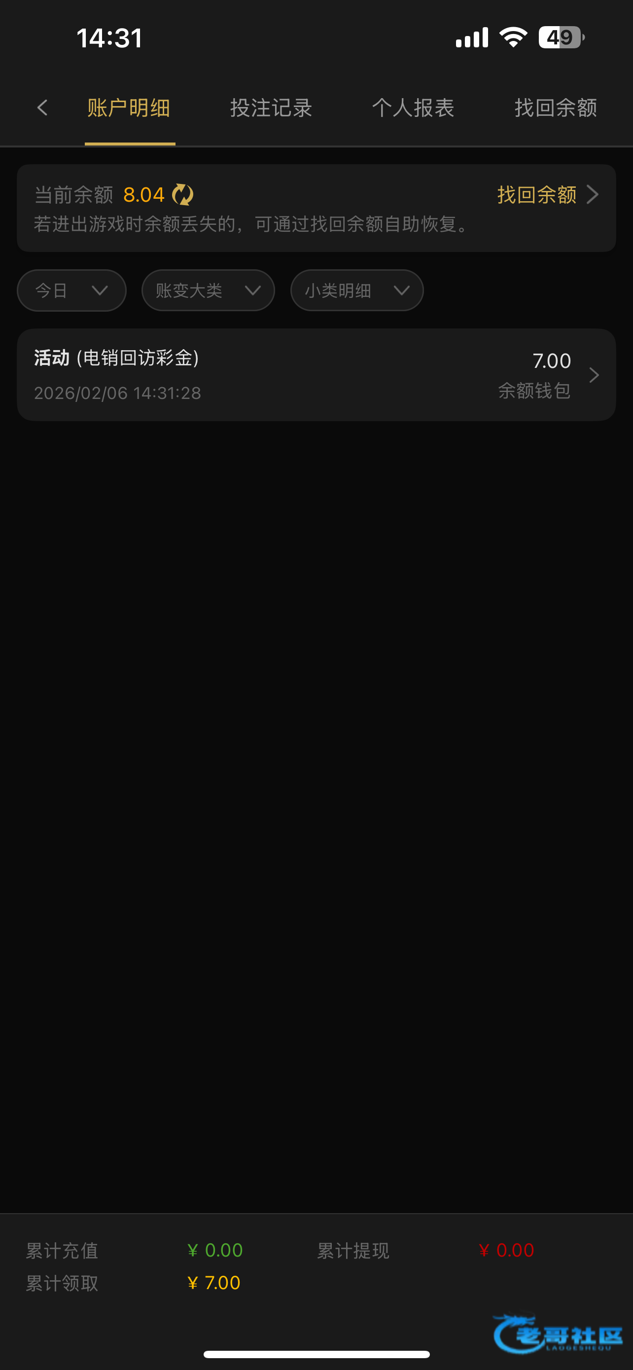 这台子元旦2号给我派送了26今天登录看看才发现,怕不给充充值了20块小吃两百