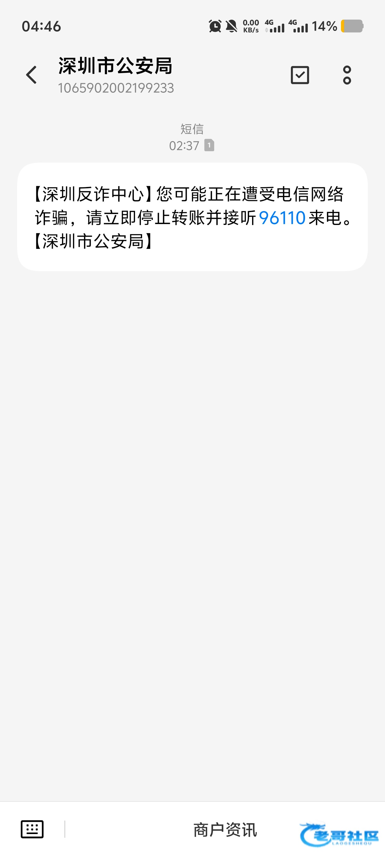 今天晚上无缘无故的触发这个反诈短信过来,我这手机没接过电话,也没有下载过什么博彩软件(网赌软件放在原子隐私系统里面一直没事)就是晚上看了个吃瓜网黑料网也能触发????反诈闲的没事干?