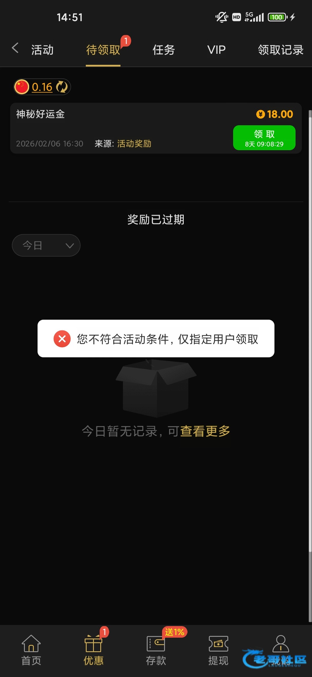 无聊登录新葡京198.cc看到待领取,点击领取限指定用户?