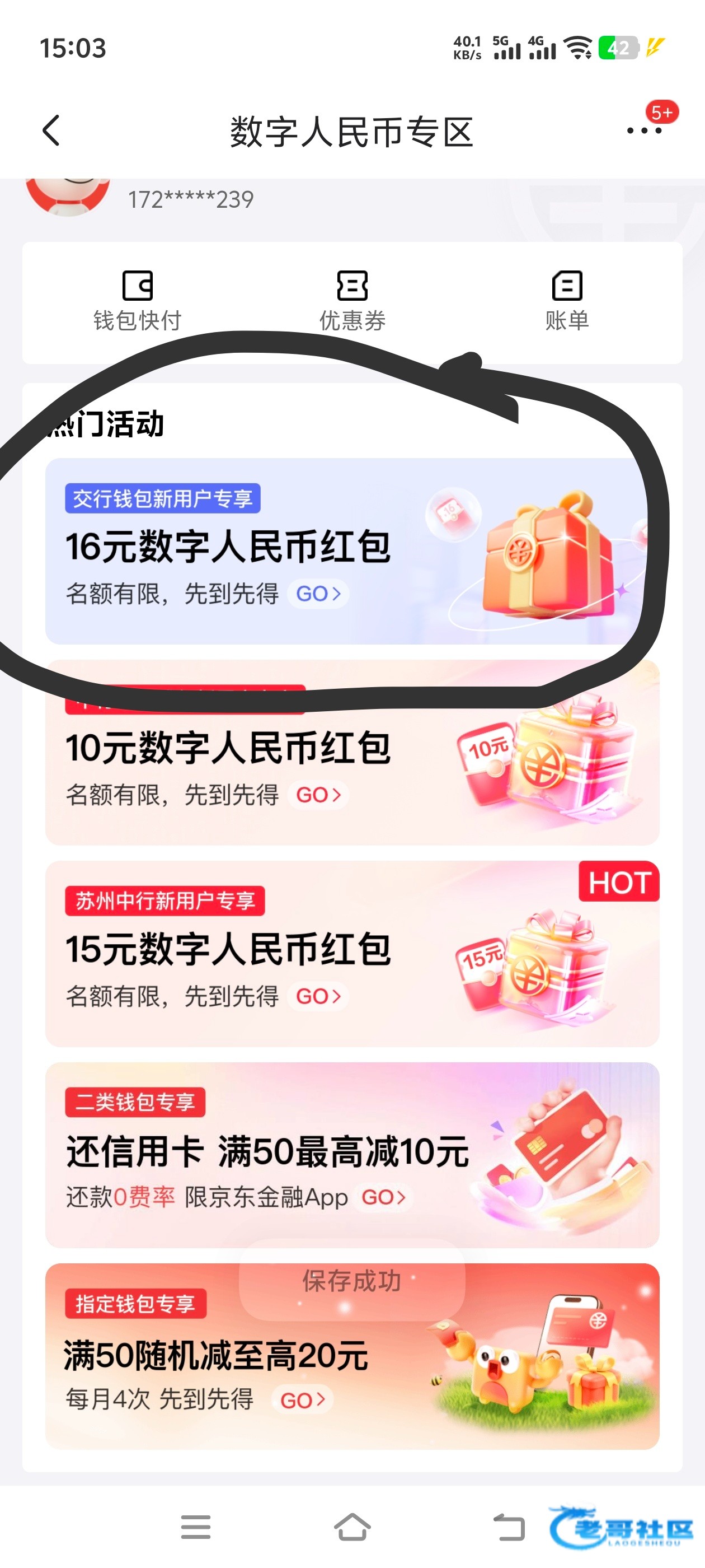 成功注册账号秒到16元消费红包 然后再数字人民币app里向钱包充值4-5元 消费红包满20才可以使用 注意只能在京东平台指定场景使用